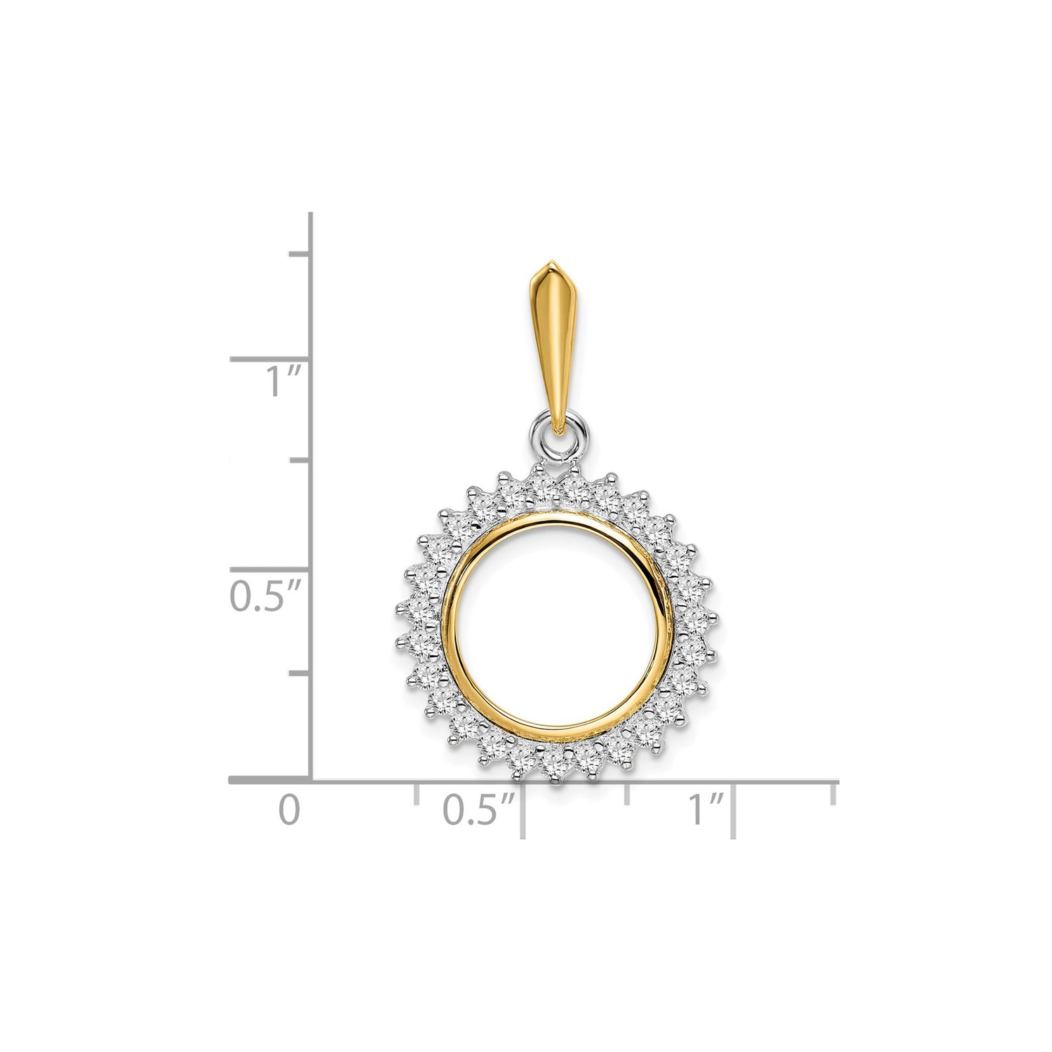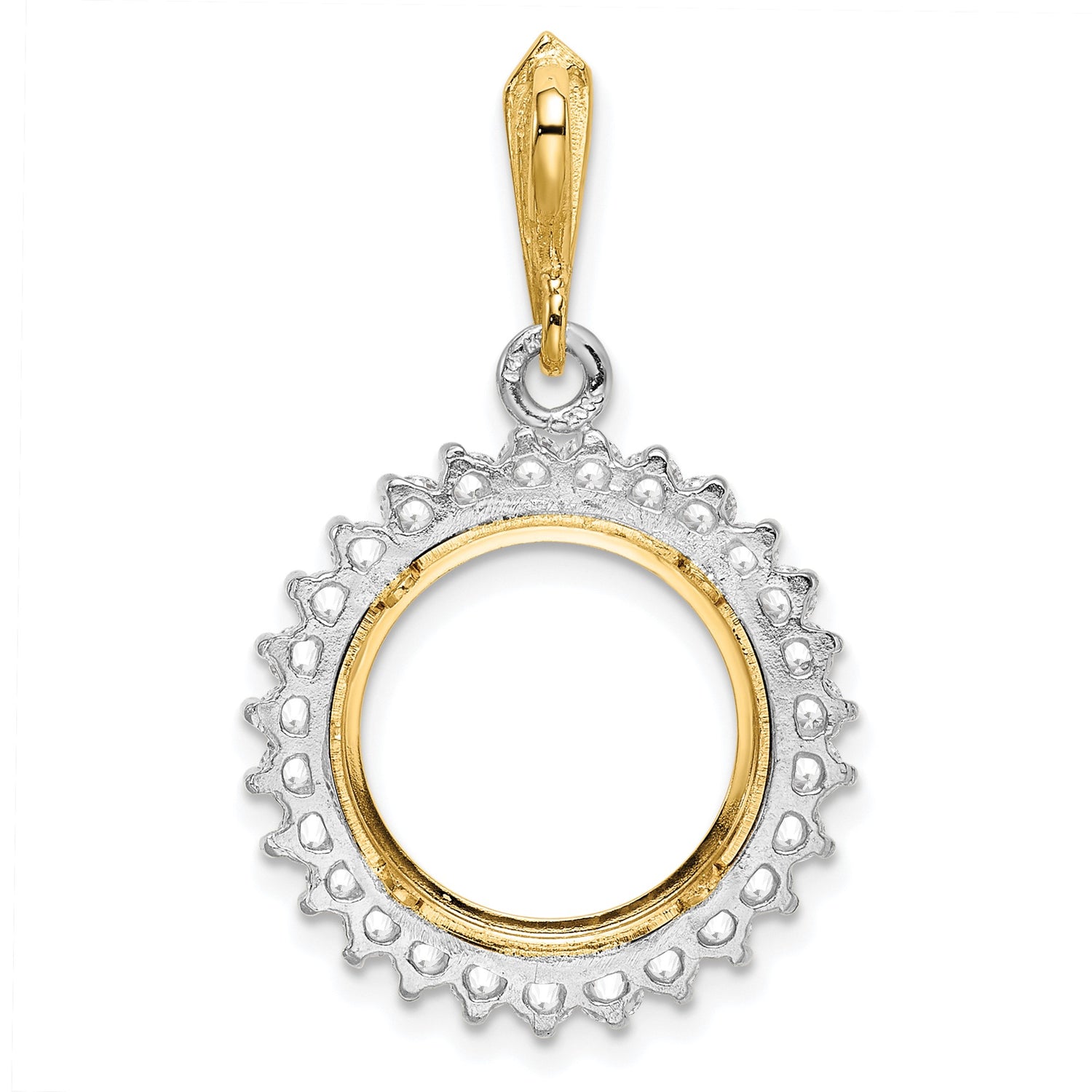Australian 1/20 oz Gold Lunar $5 Coin Bezel pendant Prong Set Diamond Circle Border in 14k Multi-Tone Gold