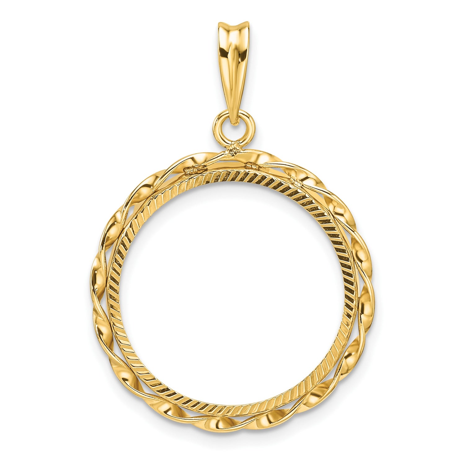 Australian 1/4 oz Gold Lunar $25 Coin Series 1 Coin Bezel Pendant Prong Set Diamond-Cut Twisted Ribbon in 14k Yellow Gold