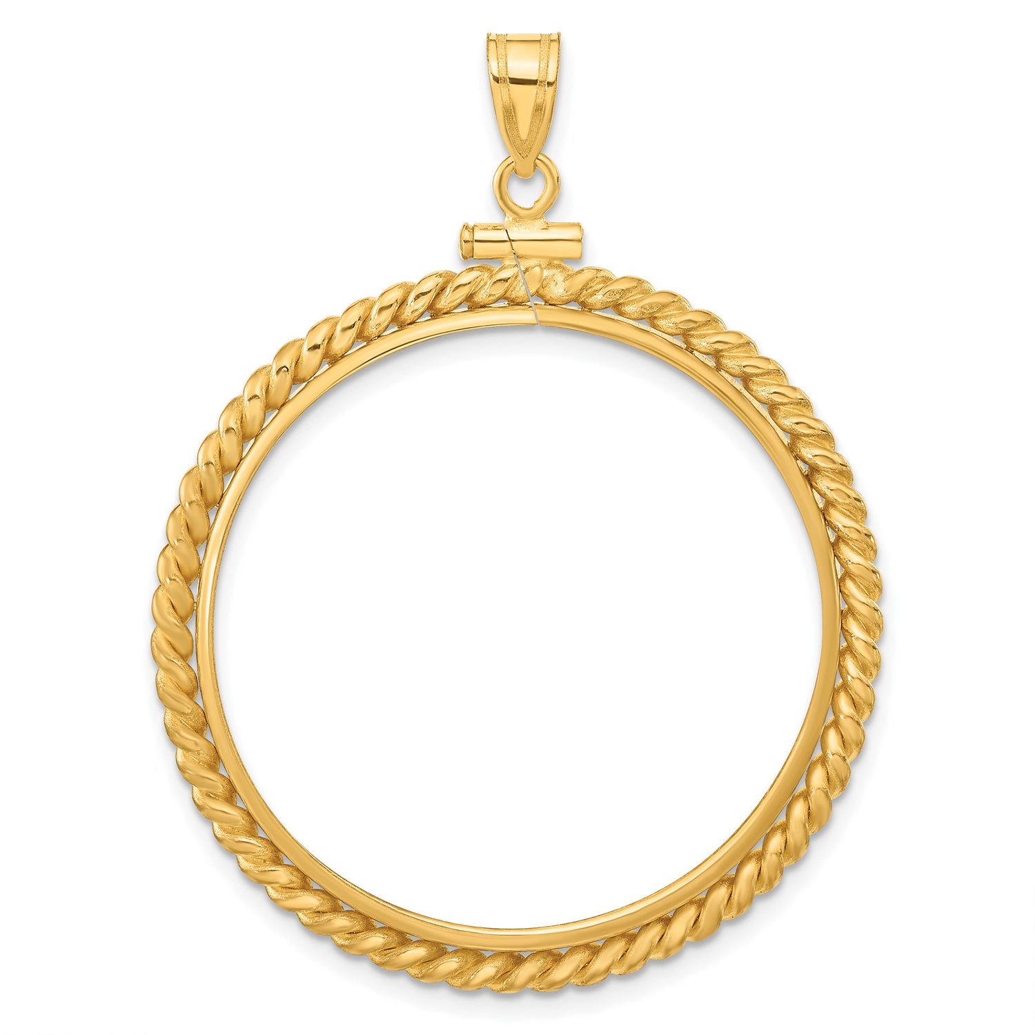 Australian 1 oz Gold Lunar $100 Coin Series 1 Coin Bezel Pendant Screw Top Braided Rope Twist in 14k Yellow Gold