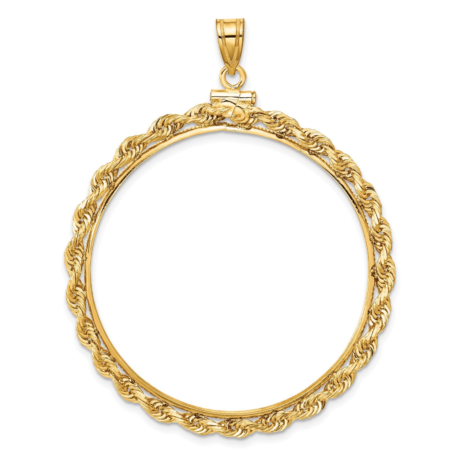Australian 1 oz Gold Lunar $100 Coin Series 2 Coin Bezel Pendant Screw Top Knotted Rope in 14k Yellow Gold