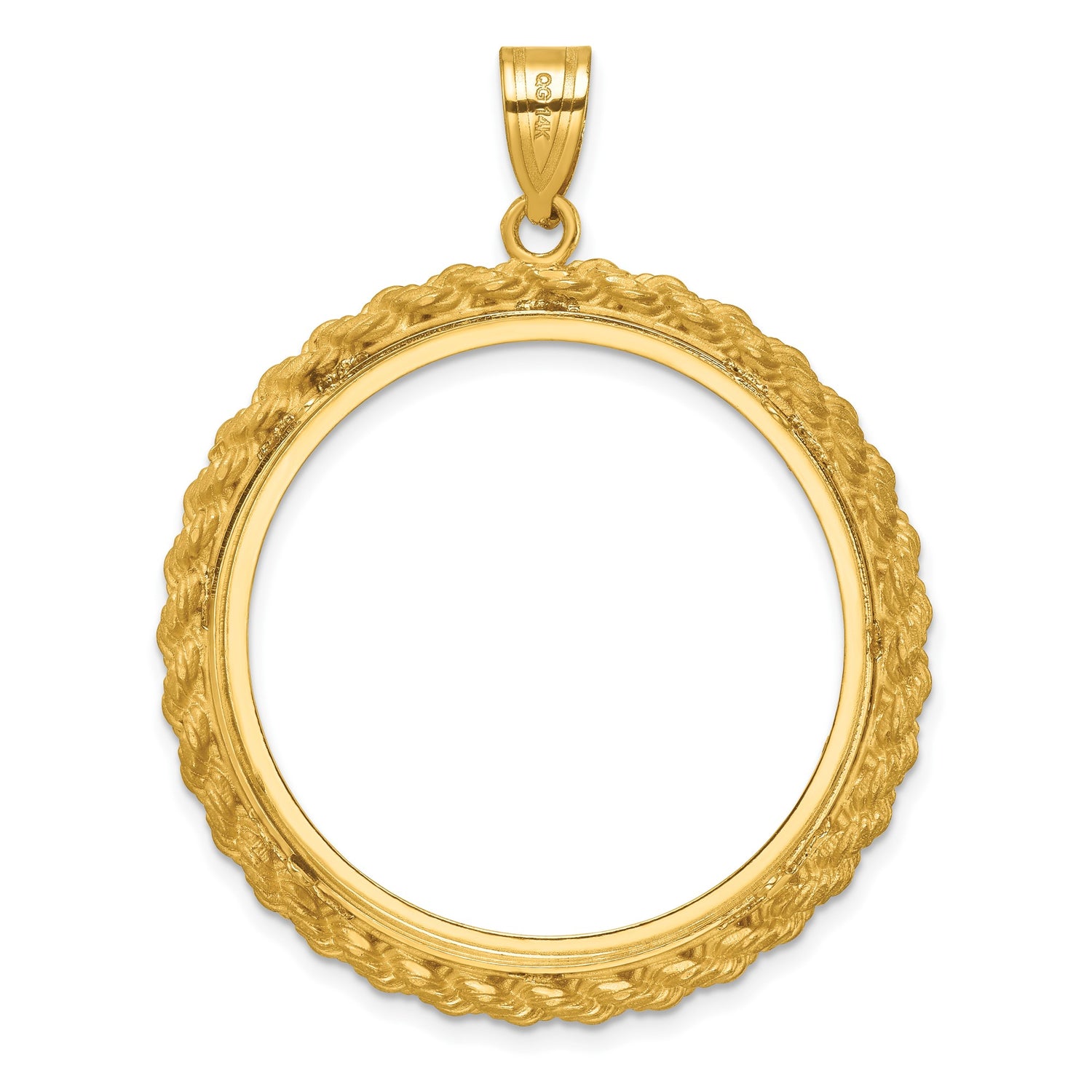 Australian 1 oz Gold Lunar $100 Coin Series 3 Coin Bezel Pendant Prong Set Diamond-Cut Polished Rope in 14k Yellow Gold