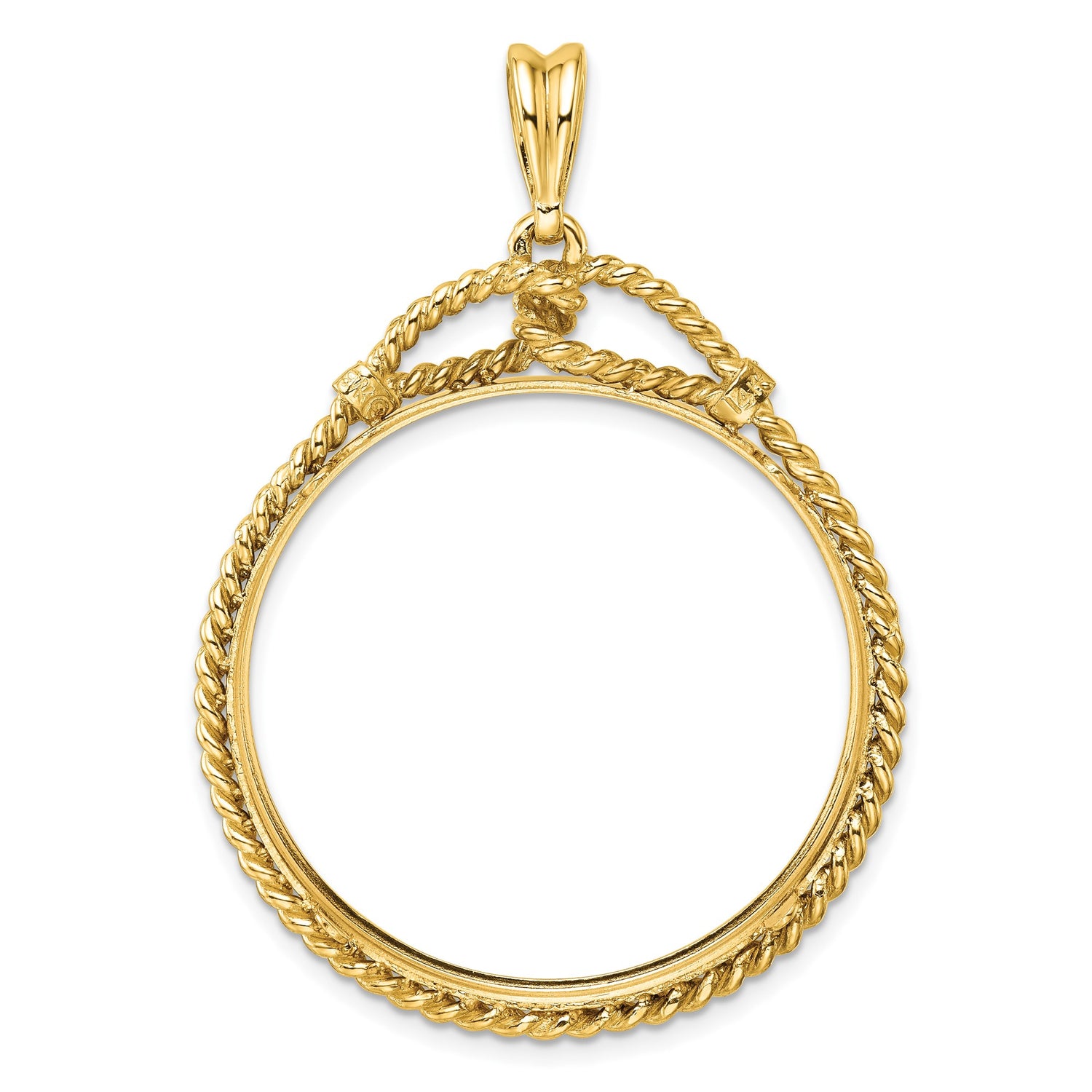 Australian 1 oz Gold Lunar $100 Coin Series 3 Coin Bezel Pendant Prong Set Western Rope in 14k Yellow Gold