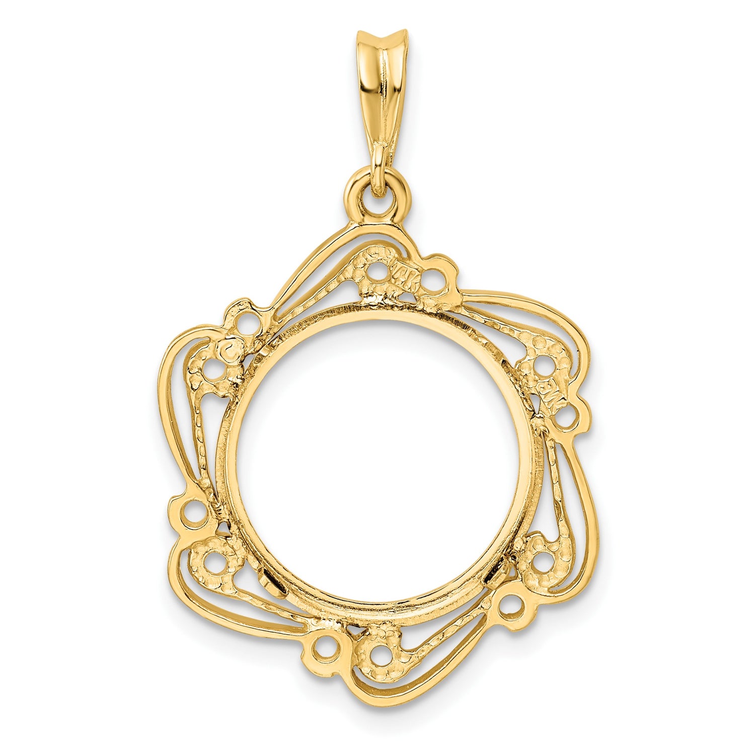 Australian 1/10 oz Gold Nugget $15 Coin Bezel Pendant Prong Set Flower Scroll in 14k Yellow Gold