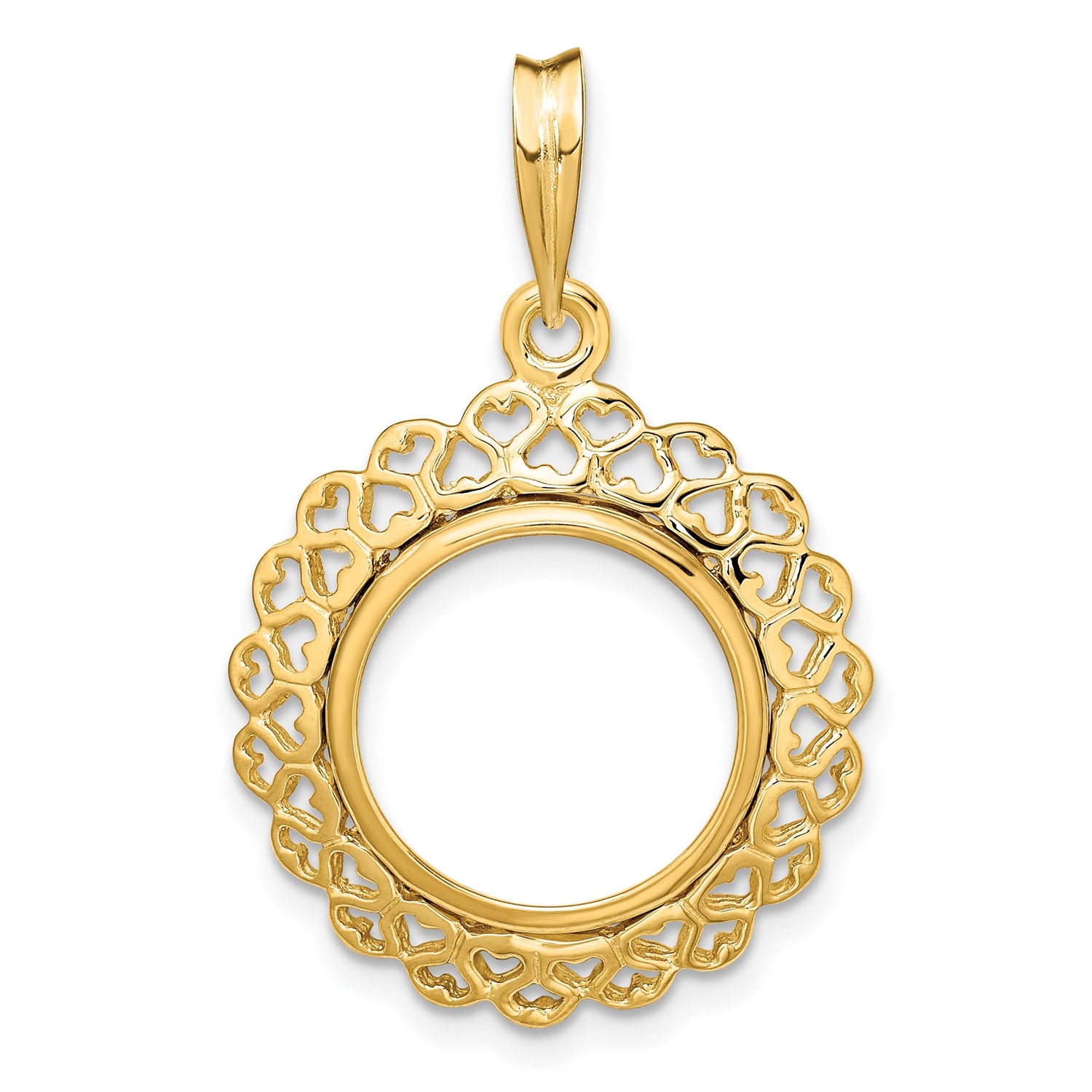 Australian 1/20 oz Gold Nugget $5 Coin Bezel Pendant Prong Set Filigree Hearts in 14k Yellow Gold