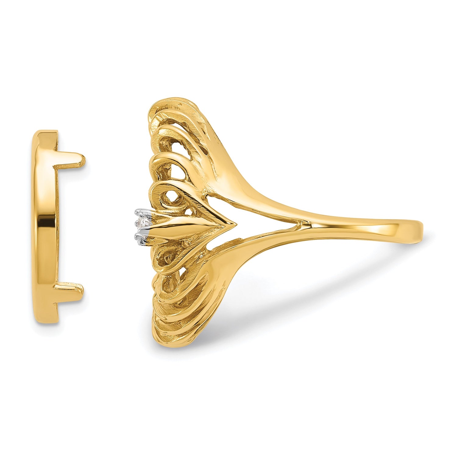 Australian 1/20 oz Gold Nugget $5 Coin Bezel Ring Prong Set Fluted Wire Two Diamond in 14k Yellow Gold