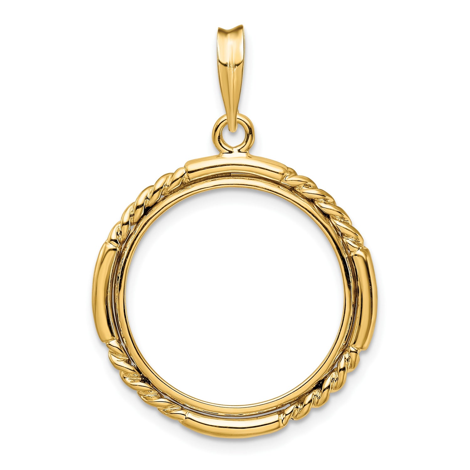 Australian 1/4 oz Gold Nugget $25 Coin Bezel Pendant Prong Set Quadruple Twist in 14k Yellow Gold