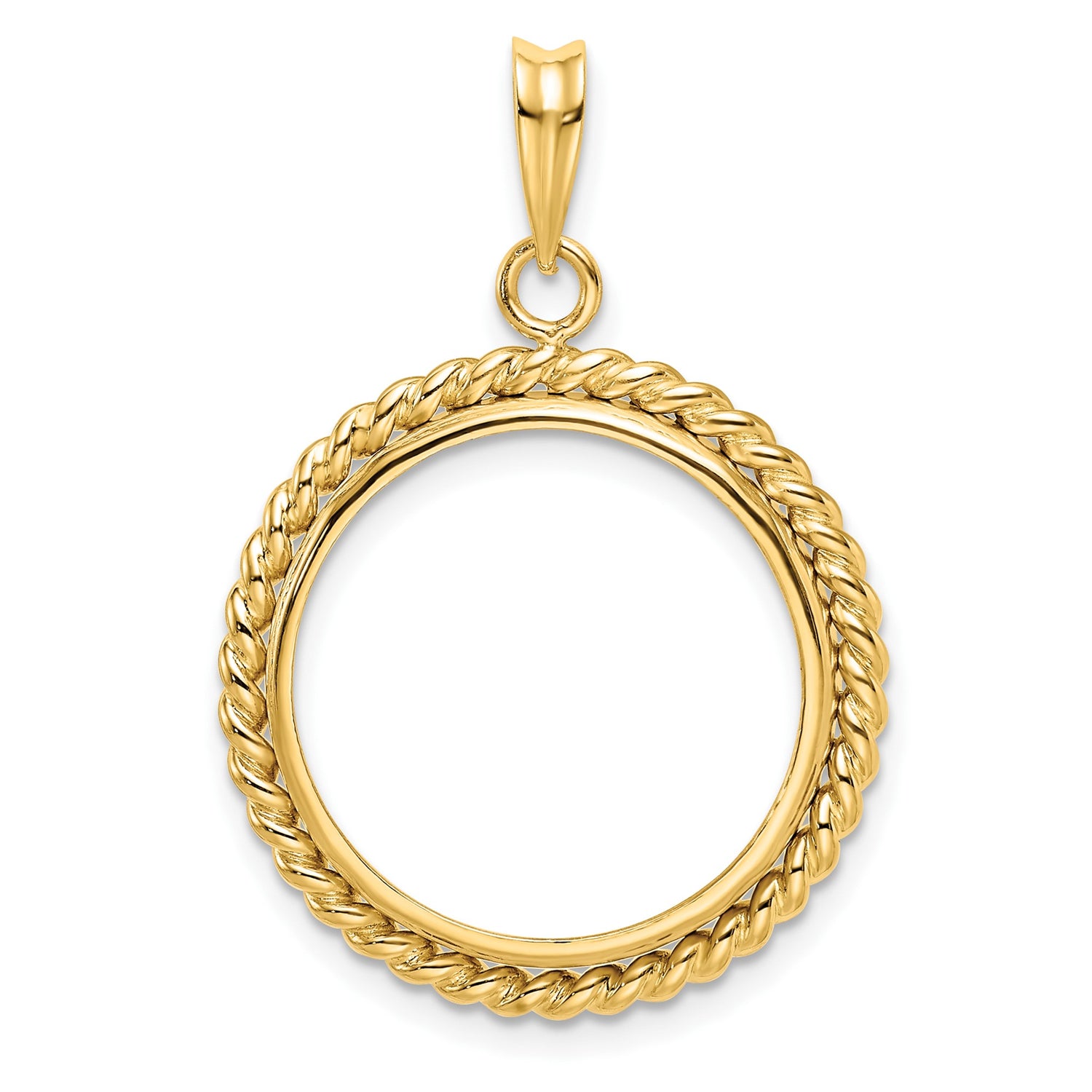 Australian 1/4 oz Gold Nugget $25 Coin Bezel Pendant Prong Set Twisted Rope in 14k Yellow Gold