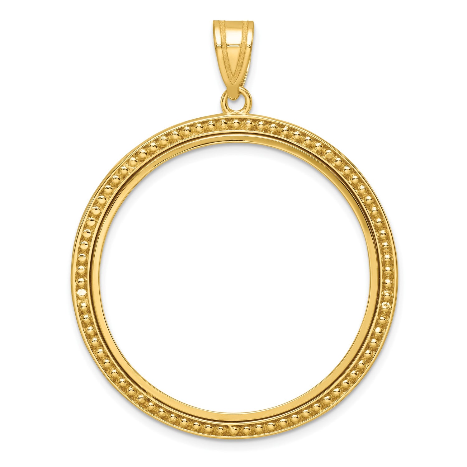 Australian 1 oz Gold Nugget $100 Coin Bezel Pendant Prong Set Beaded Border in 14k Yellow Gold