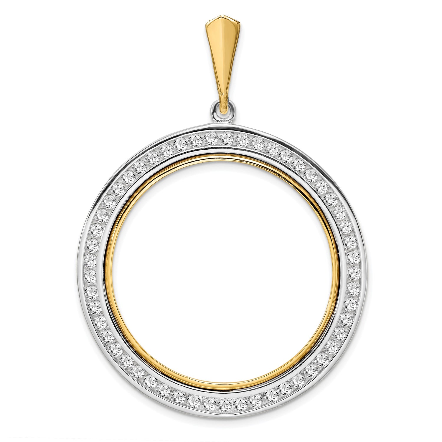 Australian 1 oz Gold Nugget $100 Coin Bezel Pendant Prong Set Channel Set Diamond Border in 14k Multi-Tone Gold