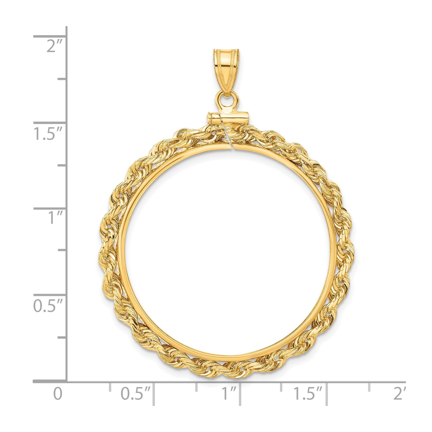 Australian 1 oz Gold Nugget $100 Coin Bezel Pendant Screw Top Knotted Rope in 14k Yellow Gold