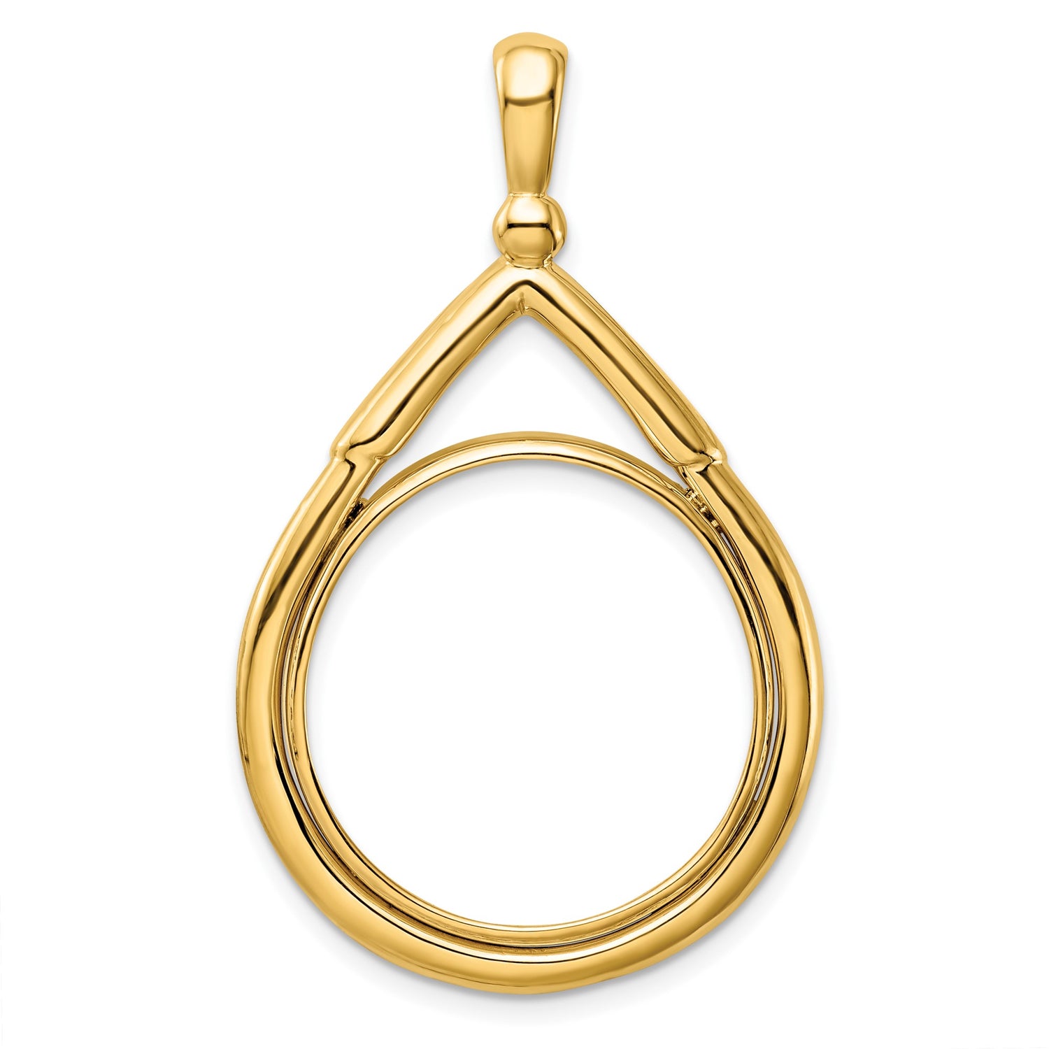 Australian Gold Sovereign Coin Bezel Pendant Prong Set Arrow Top Teardrop in 14k Yellow Gold