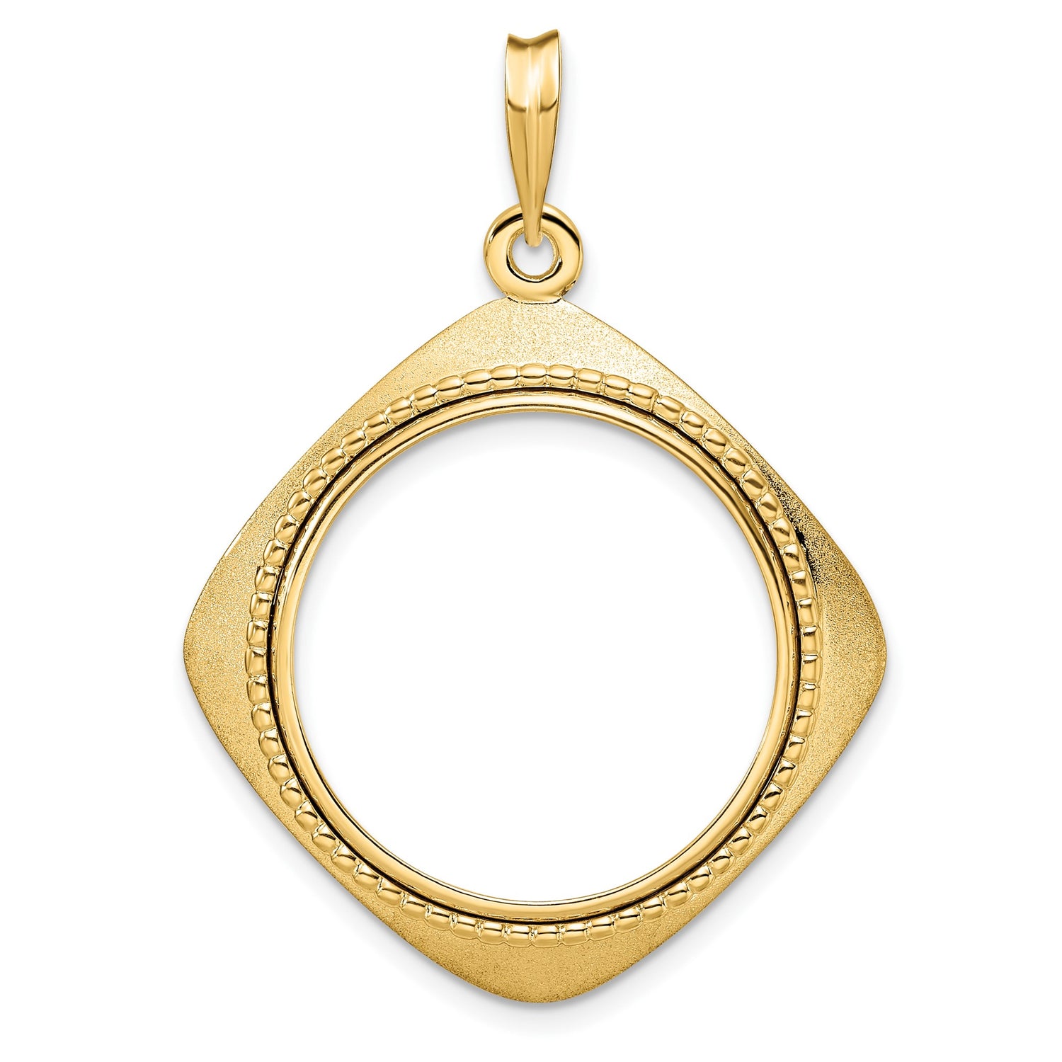 Australian Gold Sovereign Coin Bezel Pendant Prong Set Textured Square Frame in 14k Yellow Gold