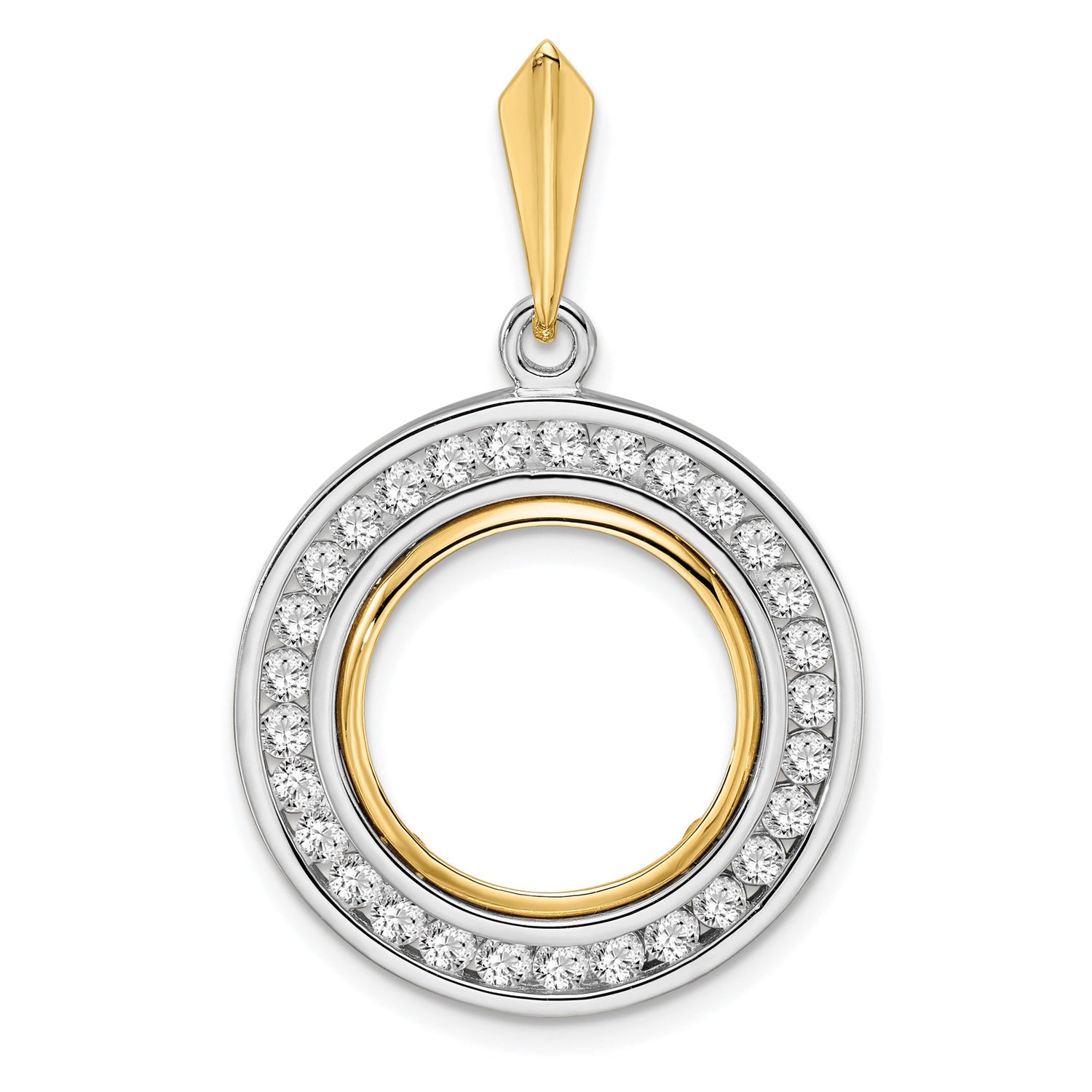 Canadian 1/15 oz Gold Maple Leaf $2 Coin Bezel Pendant Prong Set Channel Set Diamond Border (15 mm) in 14k Multi-Tone Gold