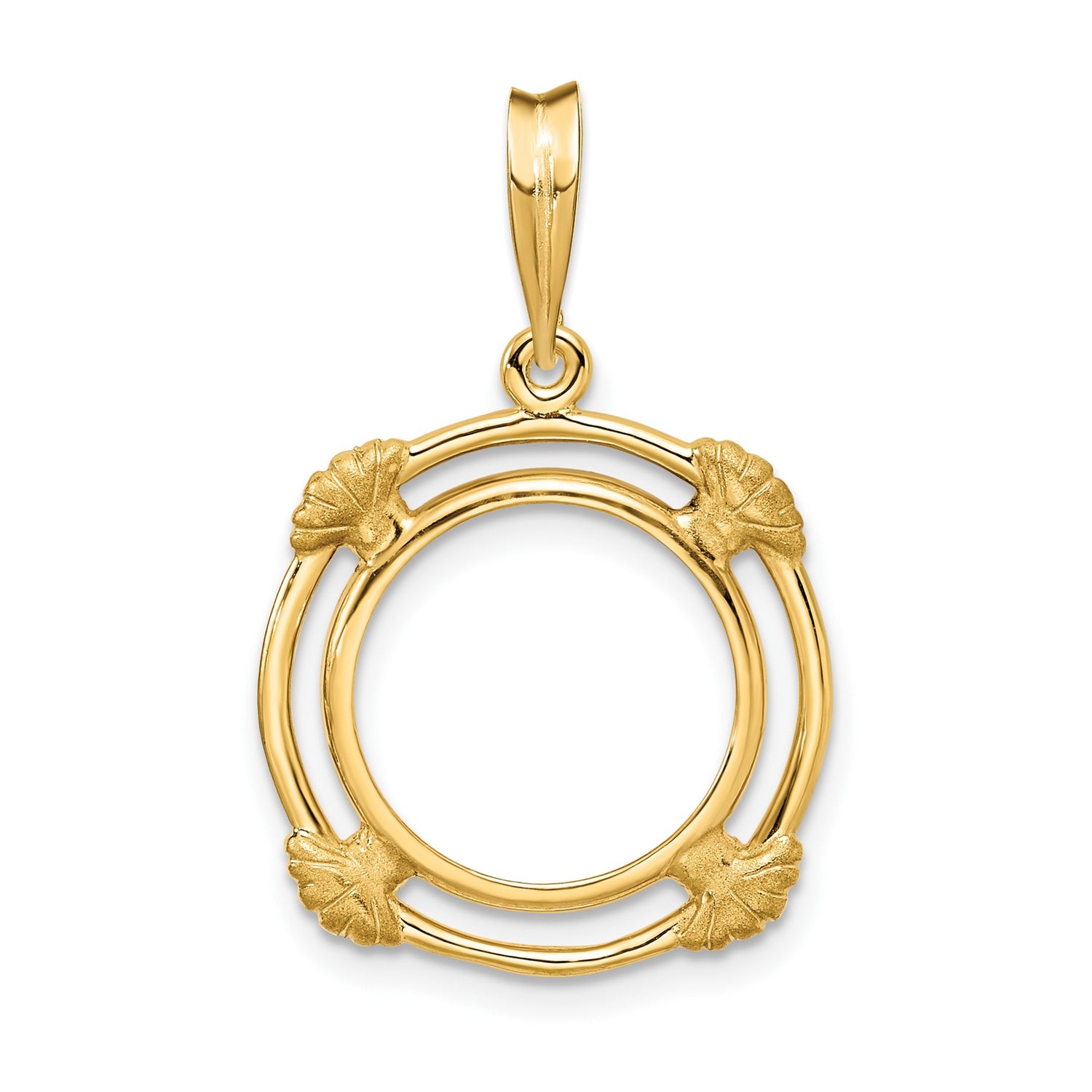 Canadian 1/20 oz Gold Maple Leaf $1 Coin Bezel Pendant Prong Set Shell Spoke in 14k Yellow Gold