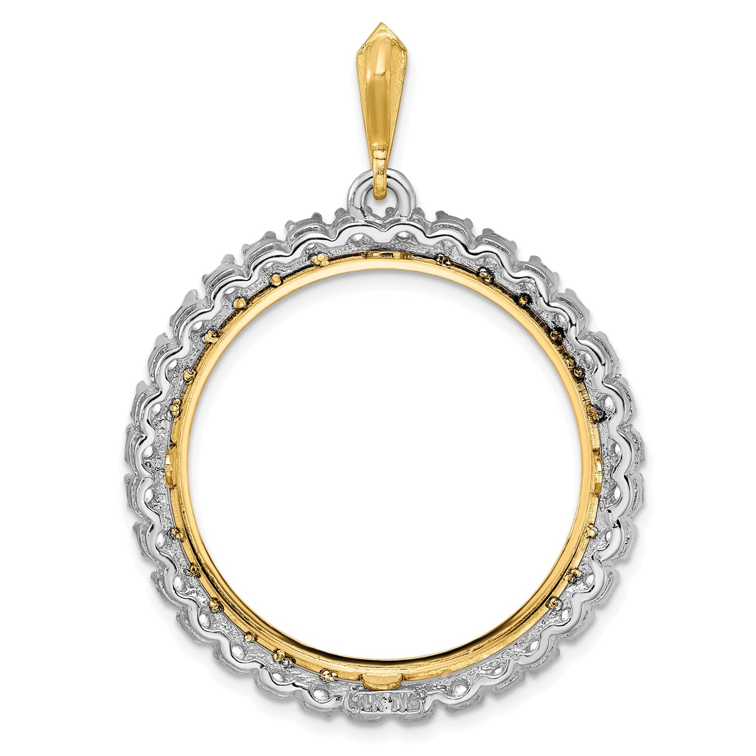 Chinese 15 gr Gold Panda ¥200 Coin Bezel pendant Prong Set Diamond Border in 14k Multi-Tone Gold