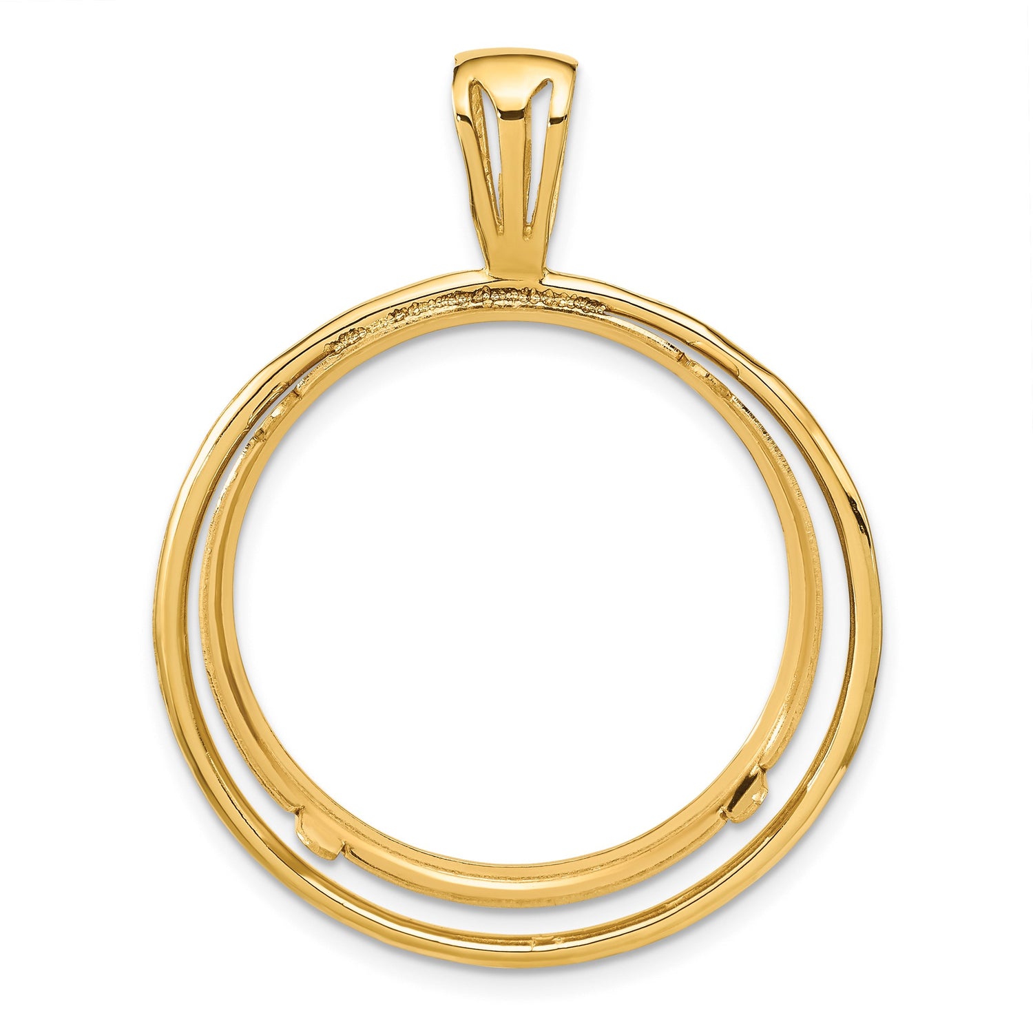Chinese 15 gr Gold Panda ¥200 Coin Bezel Pendant Prong Set Double Circle in 14k Yellow Gold
