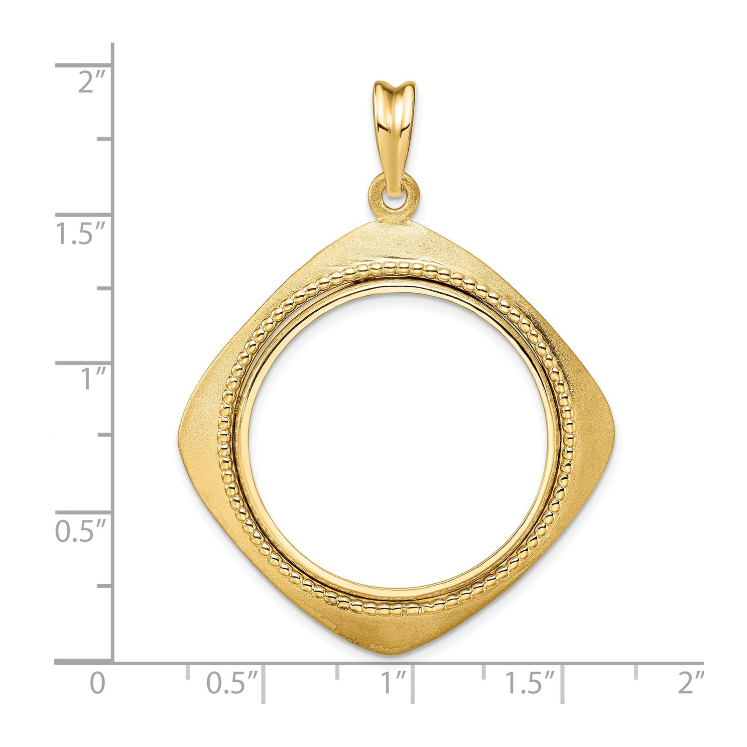 Chinese 15 gr Gold Panda ¥200 Coin Bezel Pendant Prong Set Textured Square Frame in 14k Yellow Gold