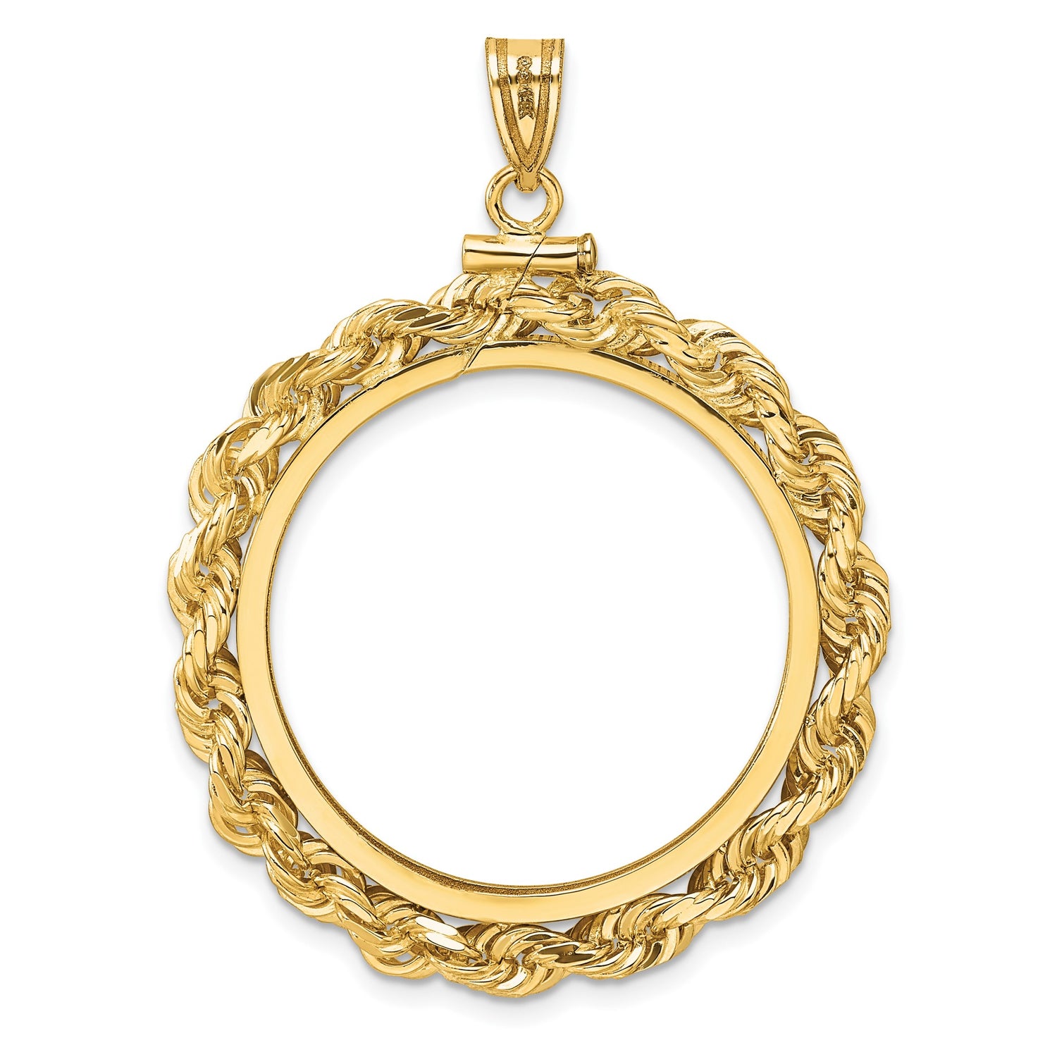 Chinese 15 gr Gold Panda ¥200 Coin Bezel Pendant Screw Top Large Diamond-Cut Knotted Rope in 14k Yellow Gold