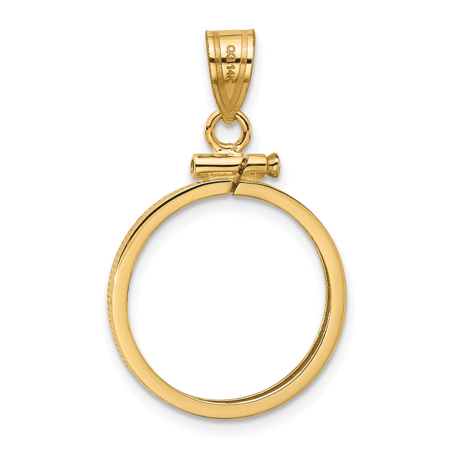 Chinese 3 gr Gold Panda ¥50 Coin Bezel Pendant Prong Set Reeded Edge in 14k Yellow Gold