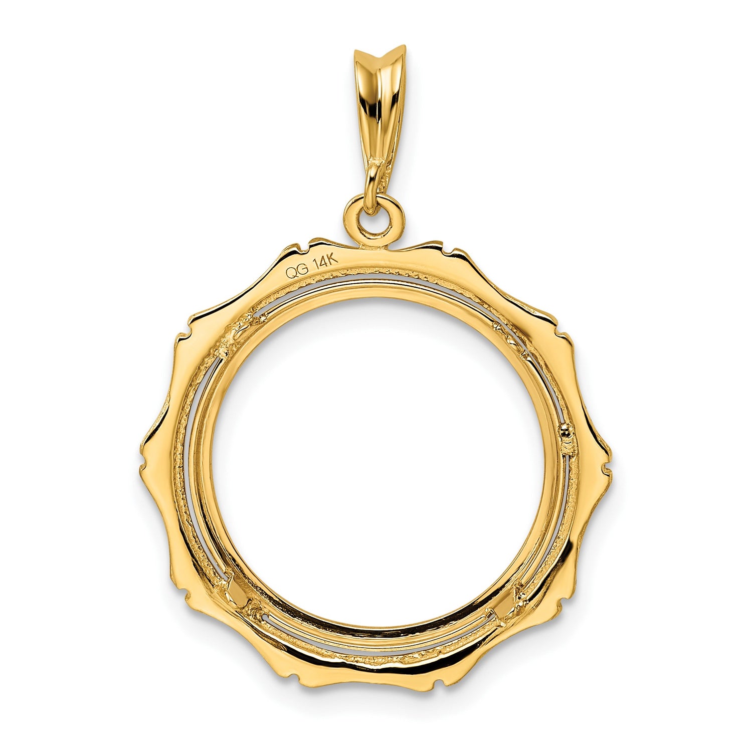 Chinese 3 gr Gold Panda ¥50 Coin Bezel Pendant Prong Set Textured Bamboo in 14k Yellow Gold