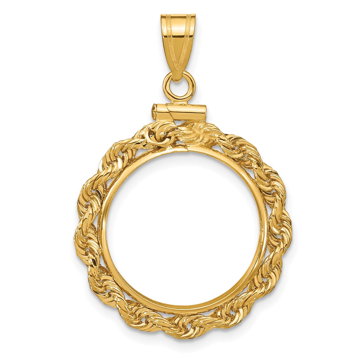 Chinese 3 gr Gold Panda ¥50 Coin Bezel Pendant Screw Top Knotted Rope in 14k Yellow Gold