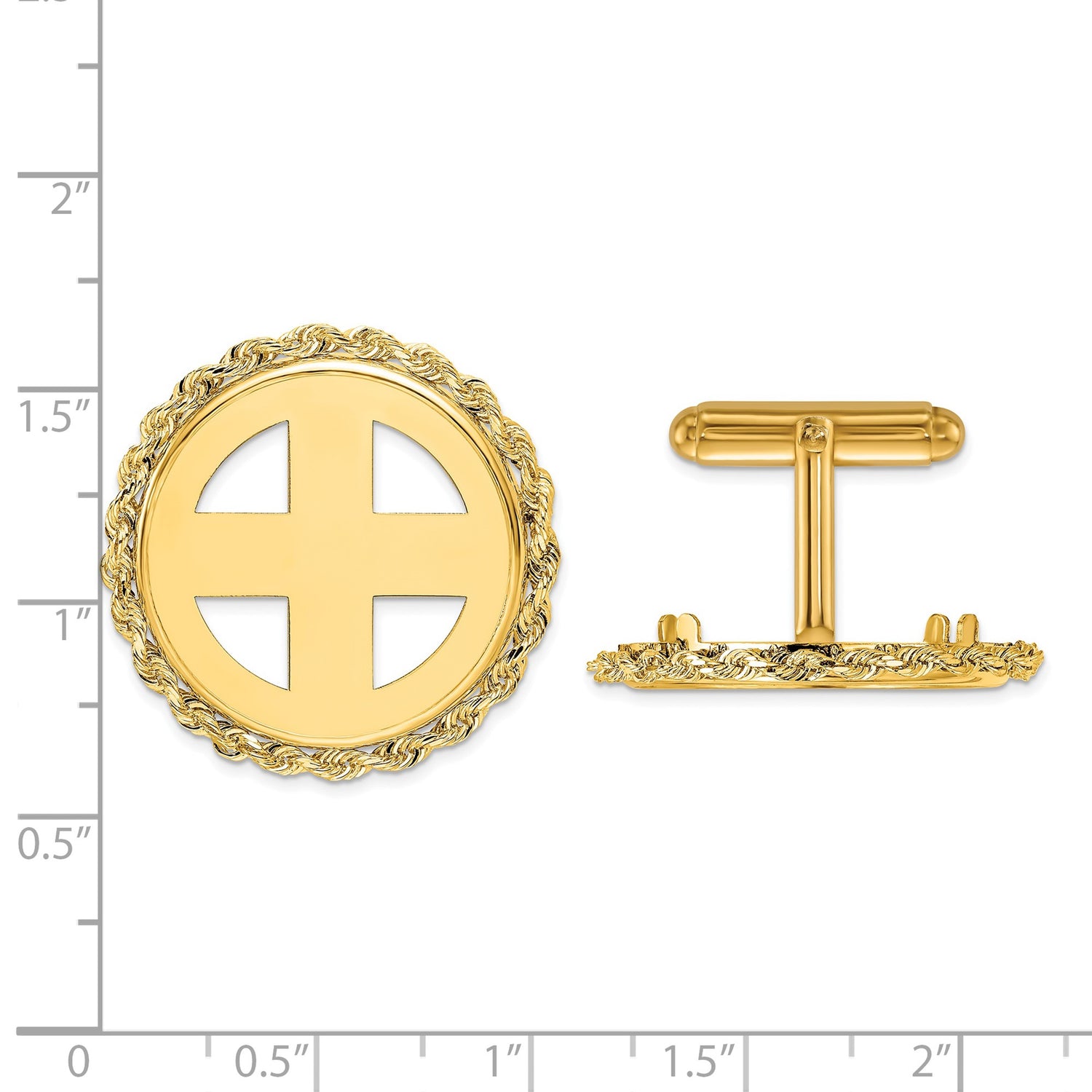 Chinese 8 gr Gold Panda ¥100 Coin Bezel Cuff Links Prong Set Polished Rope in 14k Yellow Gold
