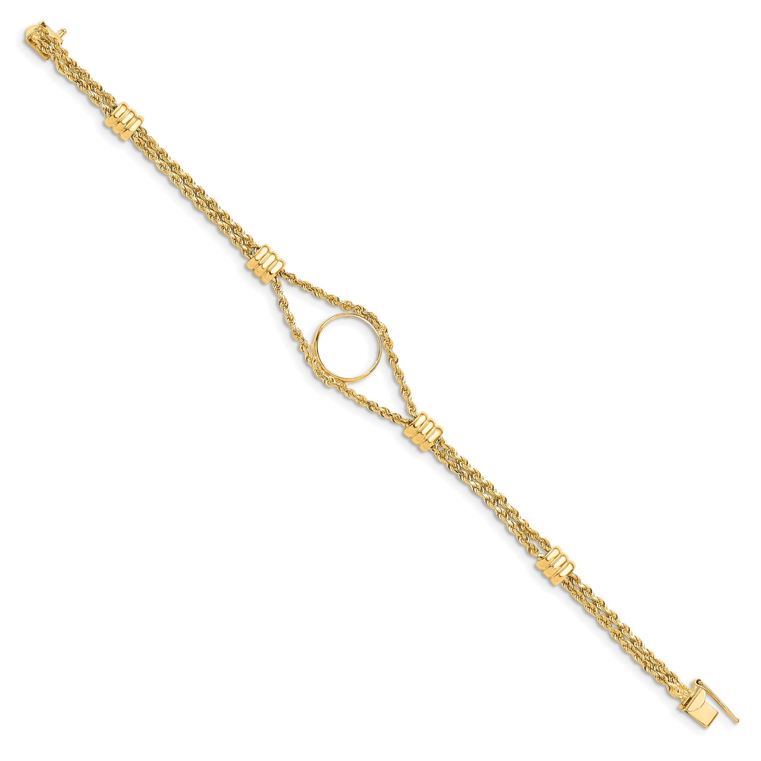 US Gold Dollar Type 1 Indian Princess Small Head $1 Coin Bezel Bracelet Prong Set 4 Station Double Rope Coin Bezel Bracelet in 14k Yellow Gold