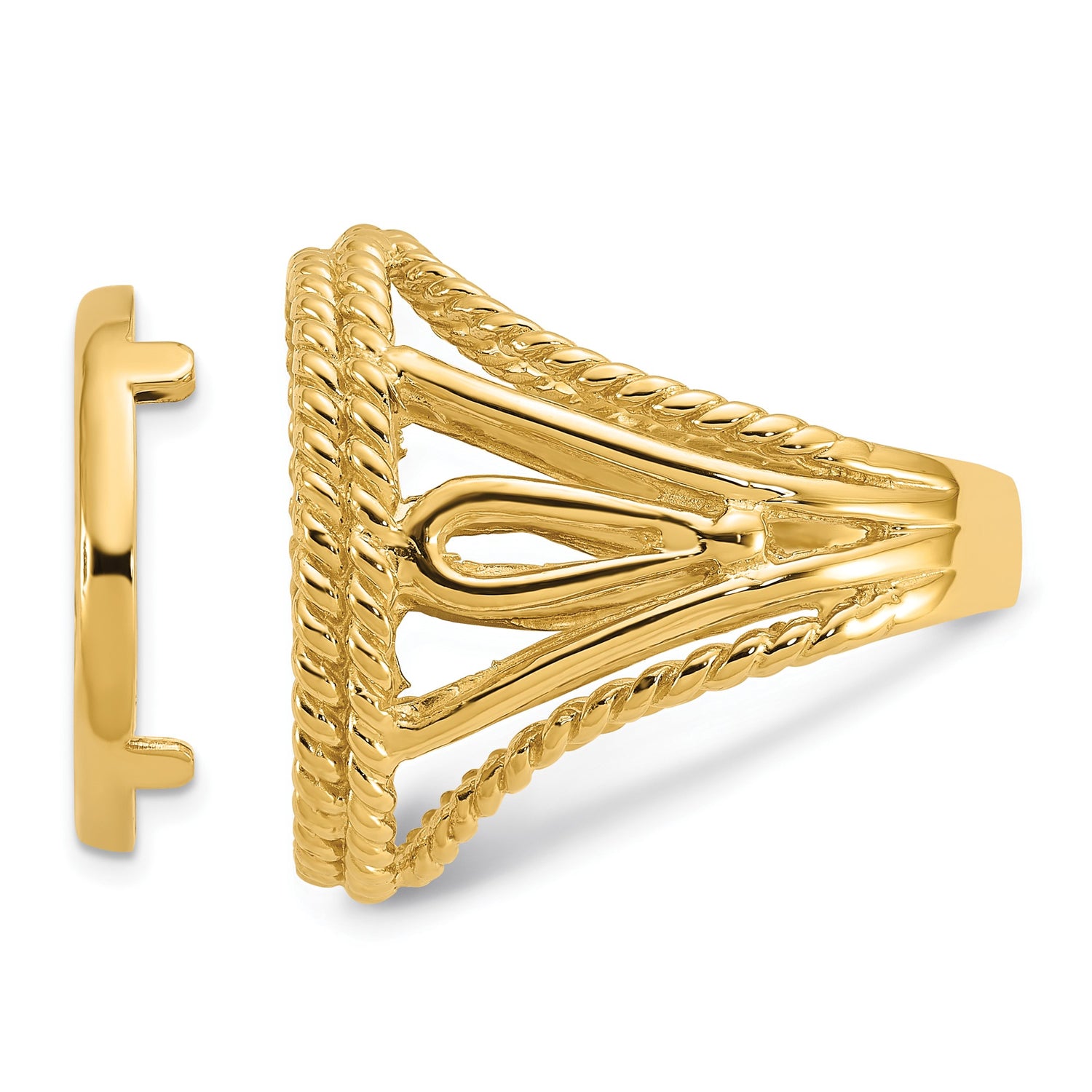 Canadian 1/10 oz Gold Maple Leaf $5 Coin Bezel Ring Prong Set Double Twisted Wire in 14k Yellow Gold