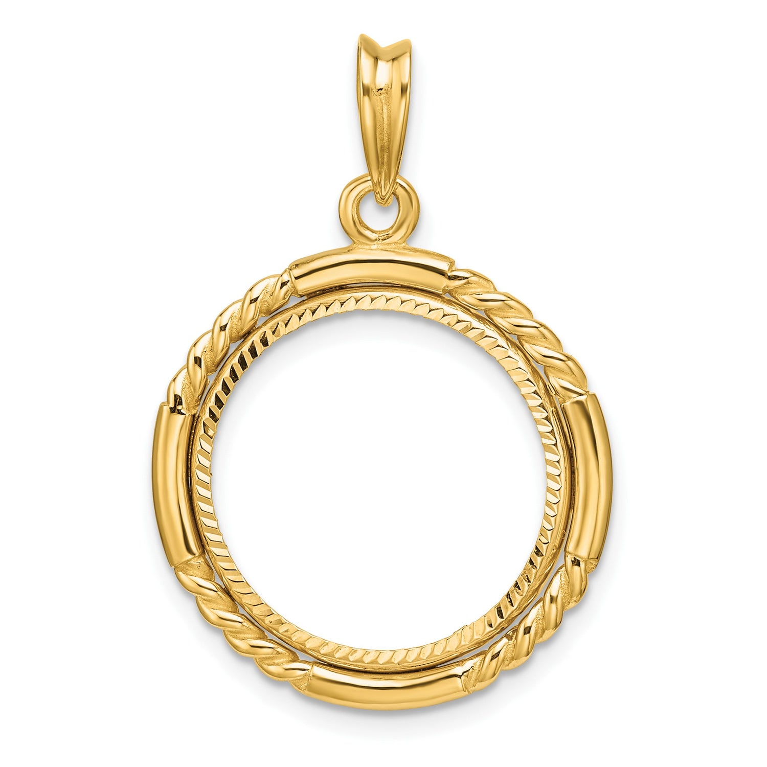 Isle of Man 1/10 oz Gold Cat Coin Bezel Pendant Prong Set Diamond-Cut Quadruple Twist in 14k Yellow Gold
