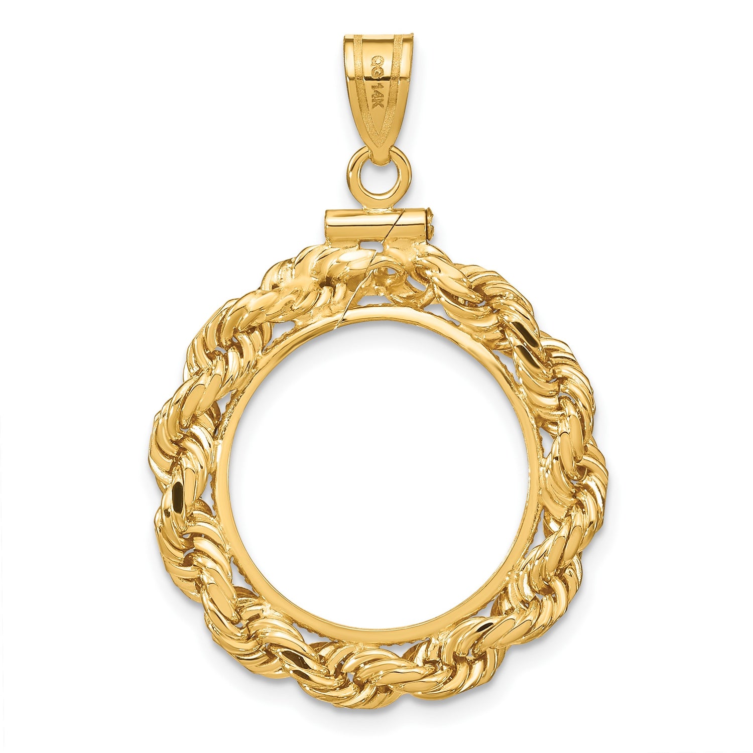 Isle of Man 1/10 oz Gold Cat Coin Bezel Pendant Screw Top Large Knotted Rope in 14k Yellow Gold