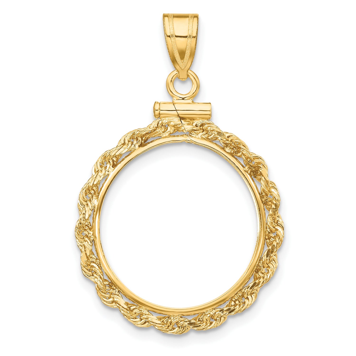 Isle of Man 1/10 oz Gold Cat Coin Bezel Pendant Screw Top Petite Knotted Rope in 14k Yellow Gold