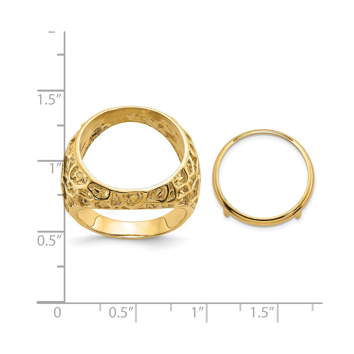 Isle of Man 1/10 oz Gold Cat Coin Bezel Ring Prong Set Mens Carved Nugget in 14k Yellow Gold