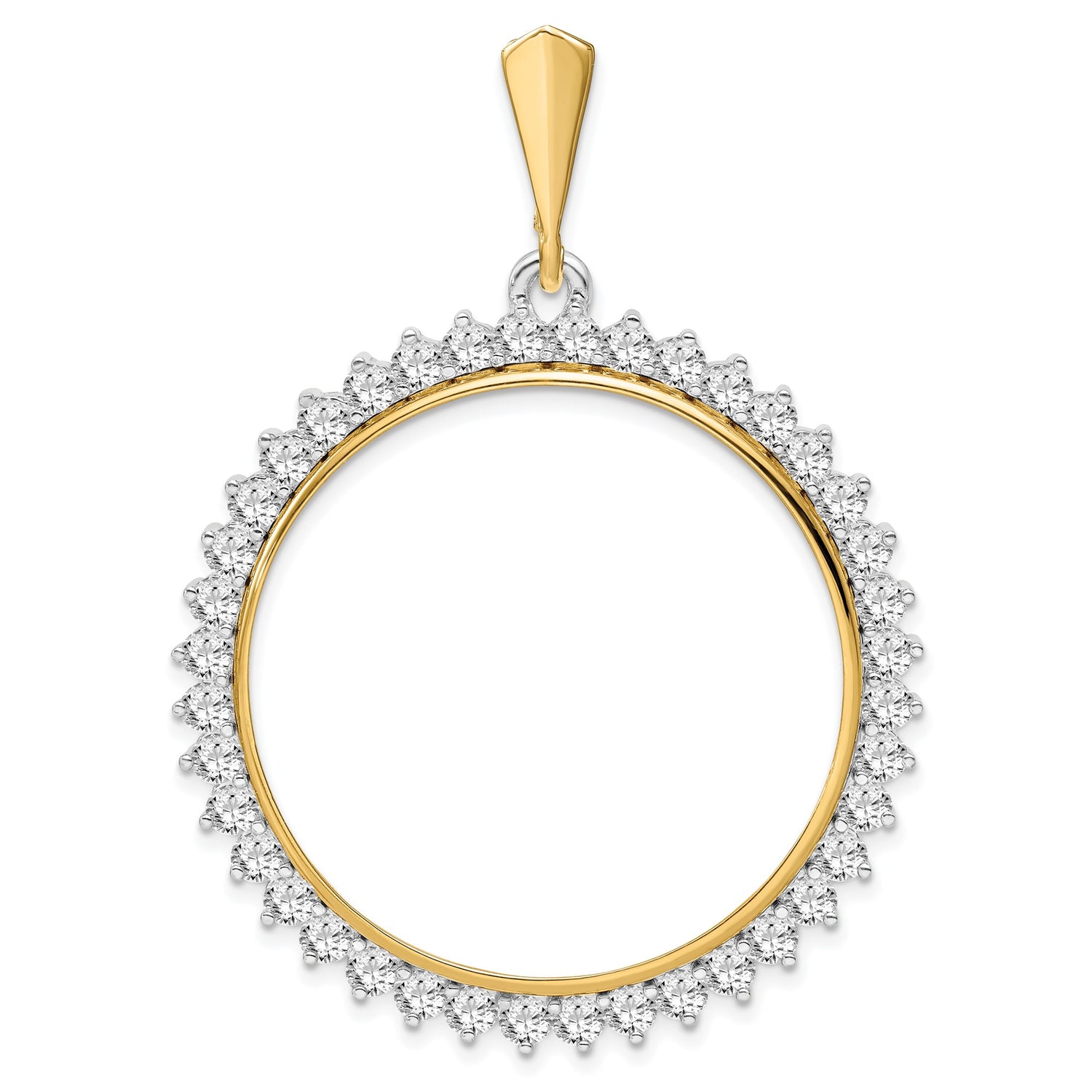 Isle of Man 1 oz Gold Noble £5 Coin Series 3 Coin Bezel Pendant Prong Set Diamond Border in 14k Multi-Tone Gold