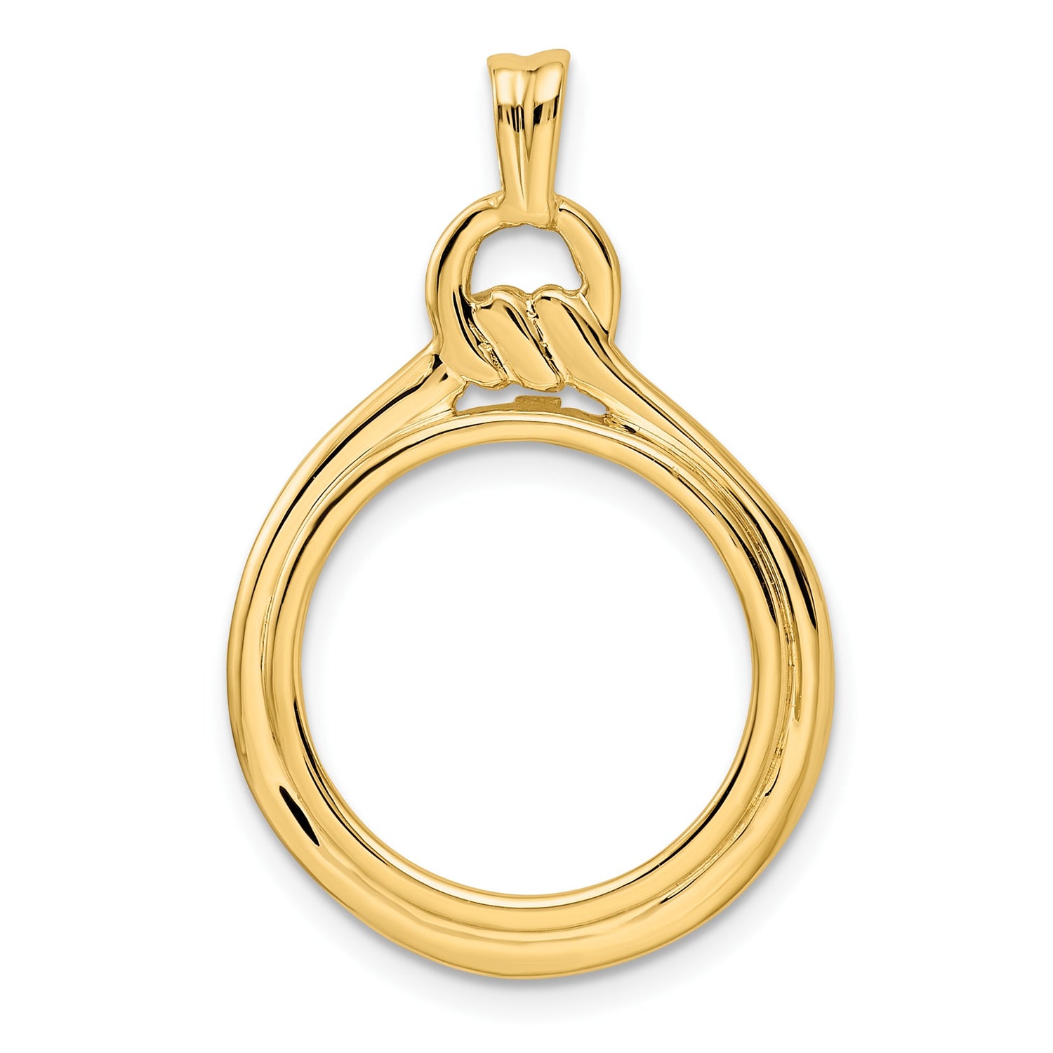 Isle of Man 1/10 oz Platinum Nobel £0.5 Coin Bezel Pendant Prong Set Loop and Knot in 14k Yellow Gold
