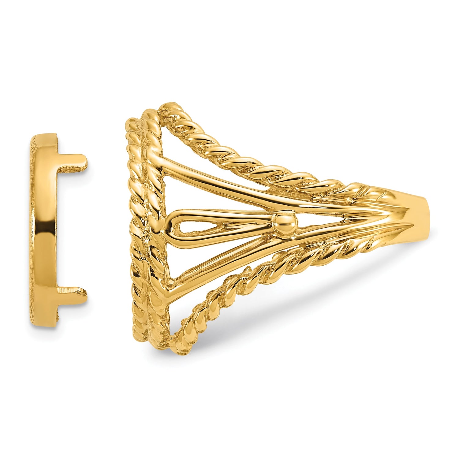 Mexican 1/20 oz Gold Libertad Coin Bezel Ring Prong Set Double Twisted Wire (13 mm) in 14k Yellow Gold