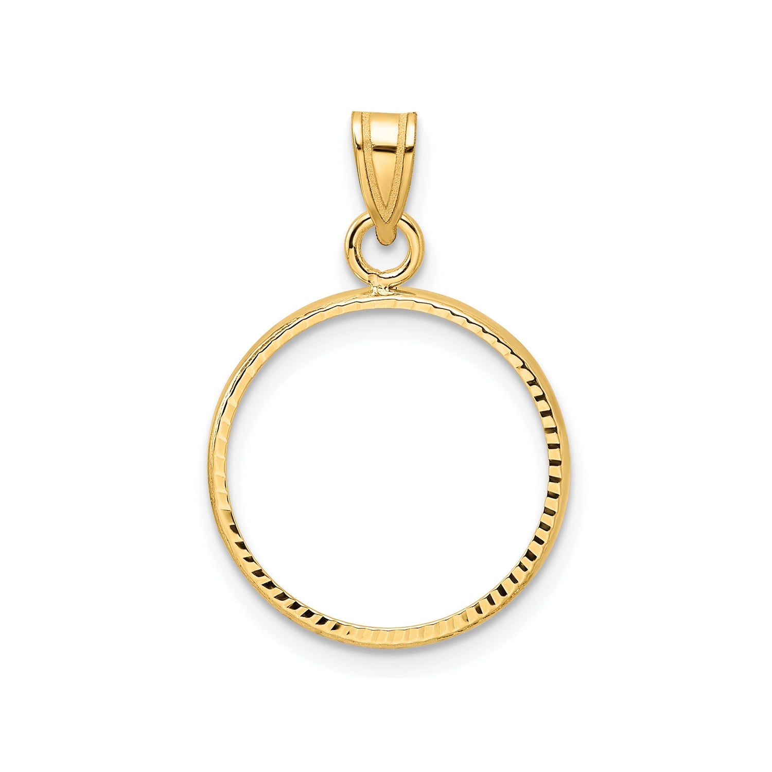 Mexican 2.5 Pesos Gold Coin Bezel Pendant Prong Set Diamond-Cut Polished in 10k Yellow Gold