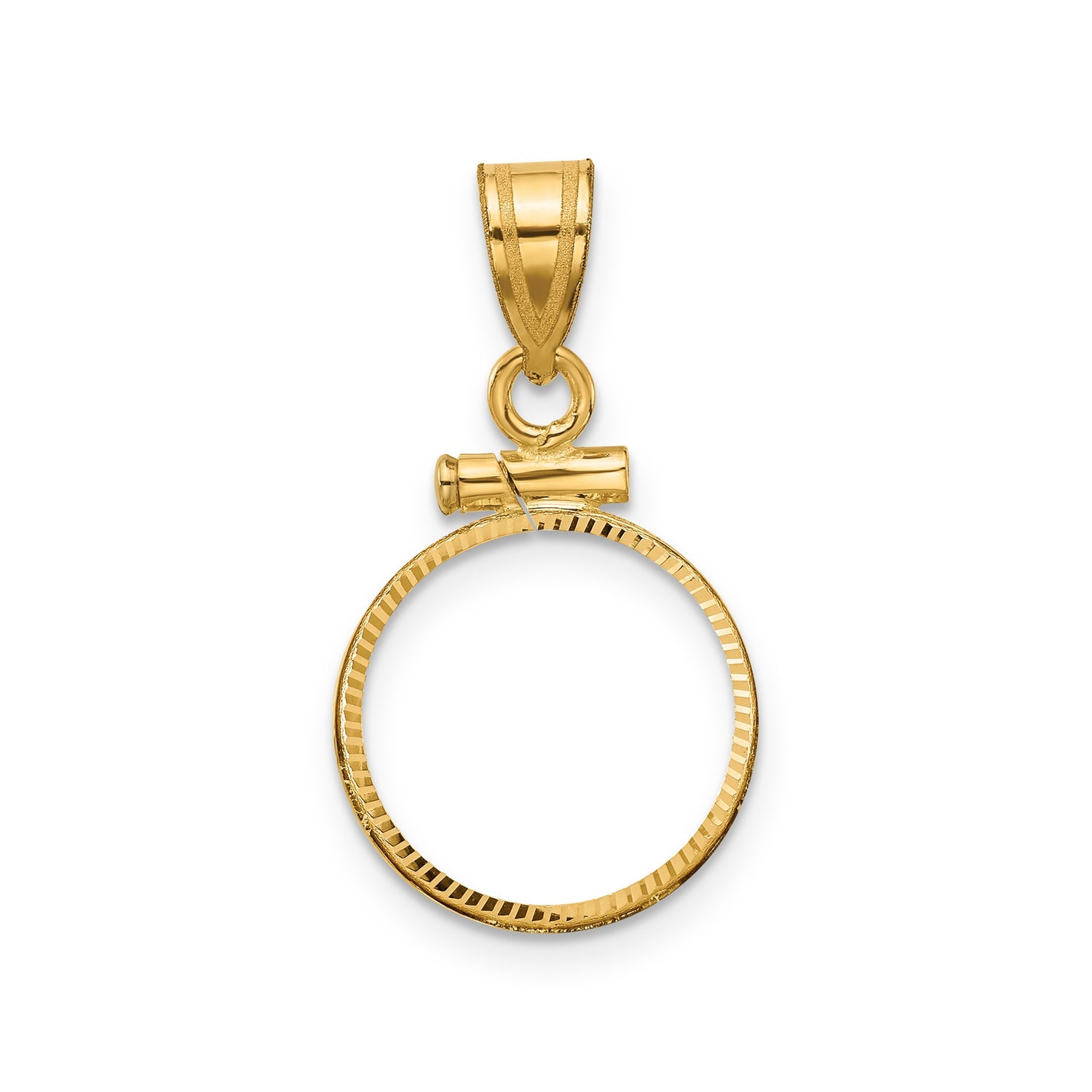 Mexican 2 Pesos Gold Coin Bezel Pendant Prong Set Diamond-Cut Reeded Border in 10k Yellow Gold