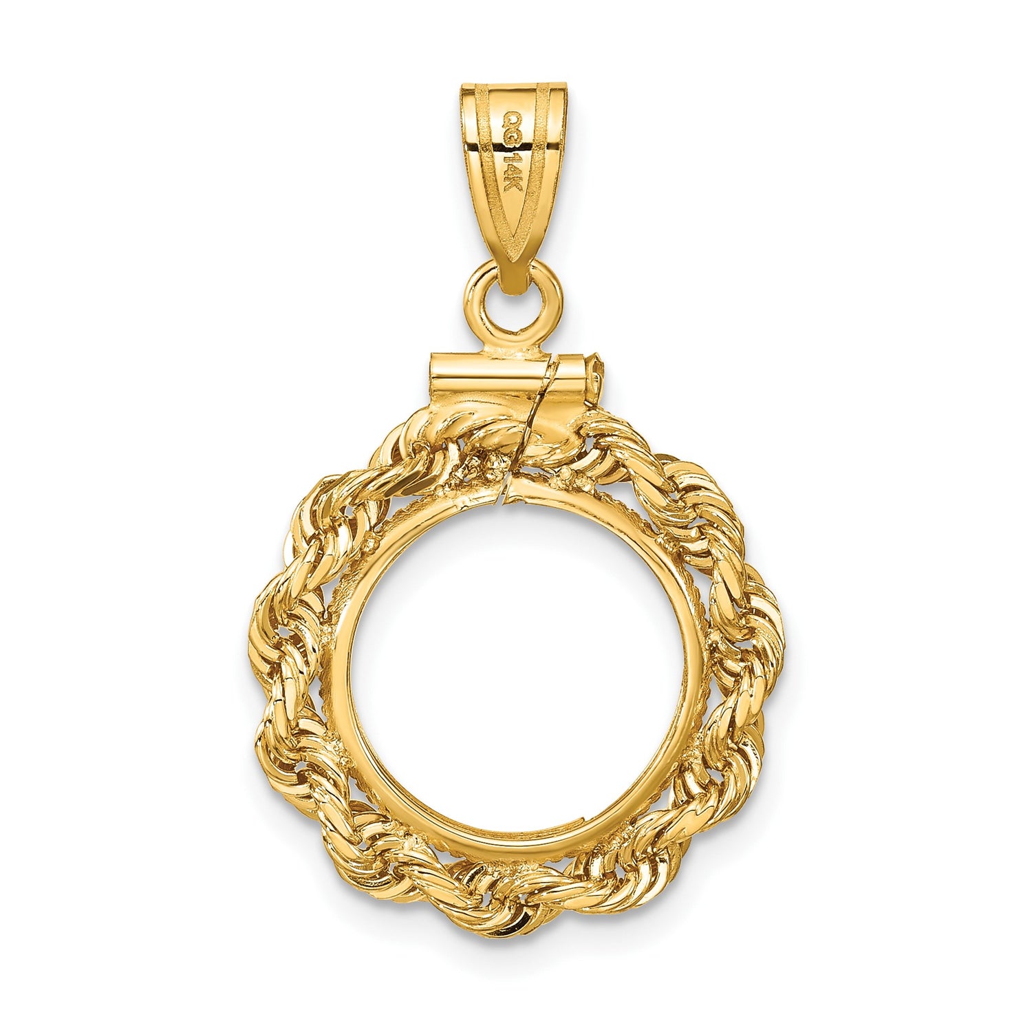 Mexican 2 Pesos Gold Coin Bezel Pendant Screw Top Knotted Rope in 14k Yellow Gold