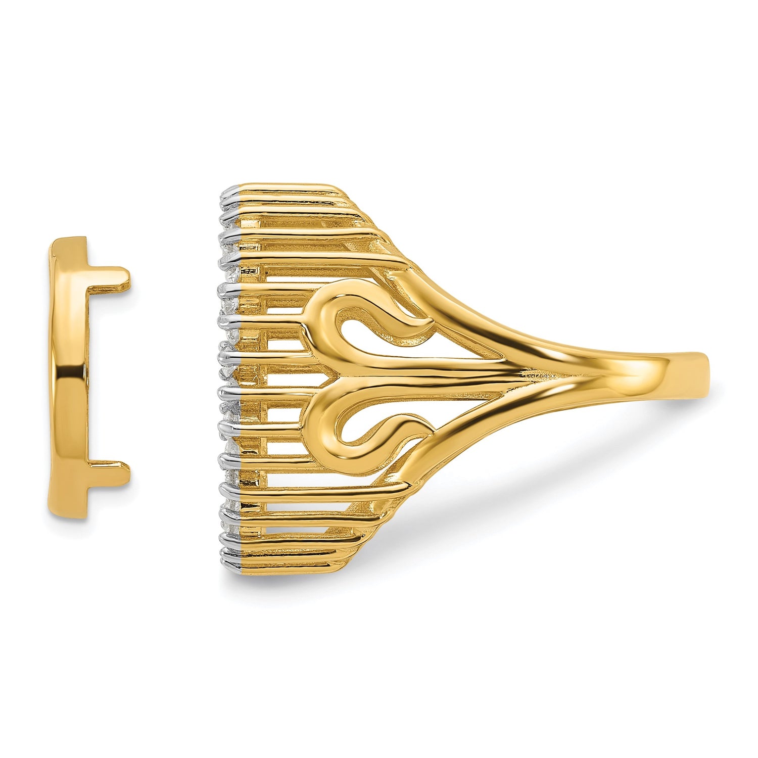 Mexican 2 Pesos Gold Coin Bezel Ring Prong Set Diamond Polished Wire Trident Design in 14k Yellow Gold