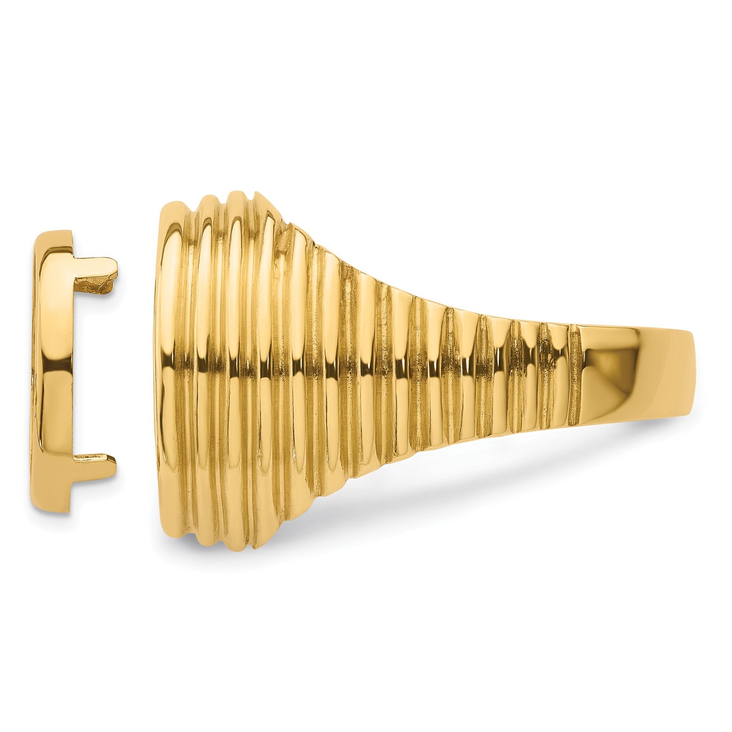 Mexican 2 Pesos Gold Coin Bezel Ring Prong Set Polished Horizontal Fluting in 14k Yellow Gold