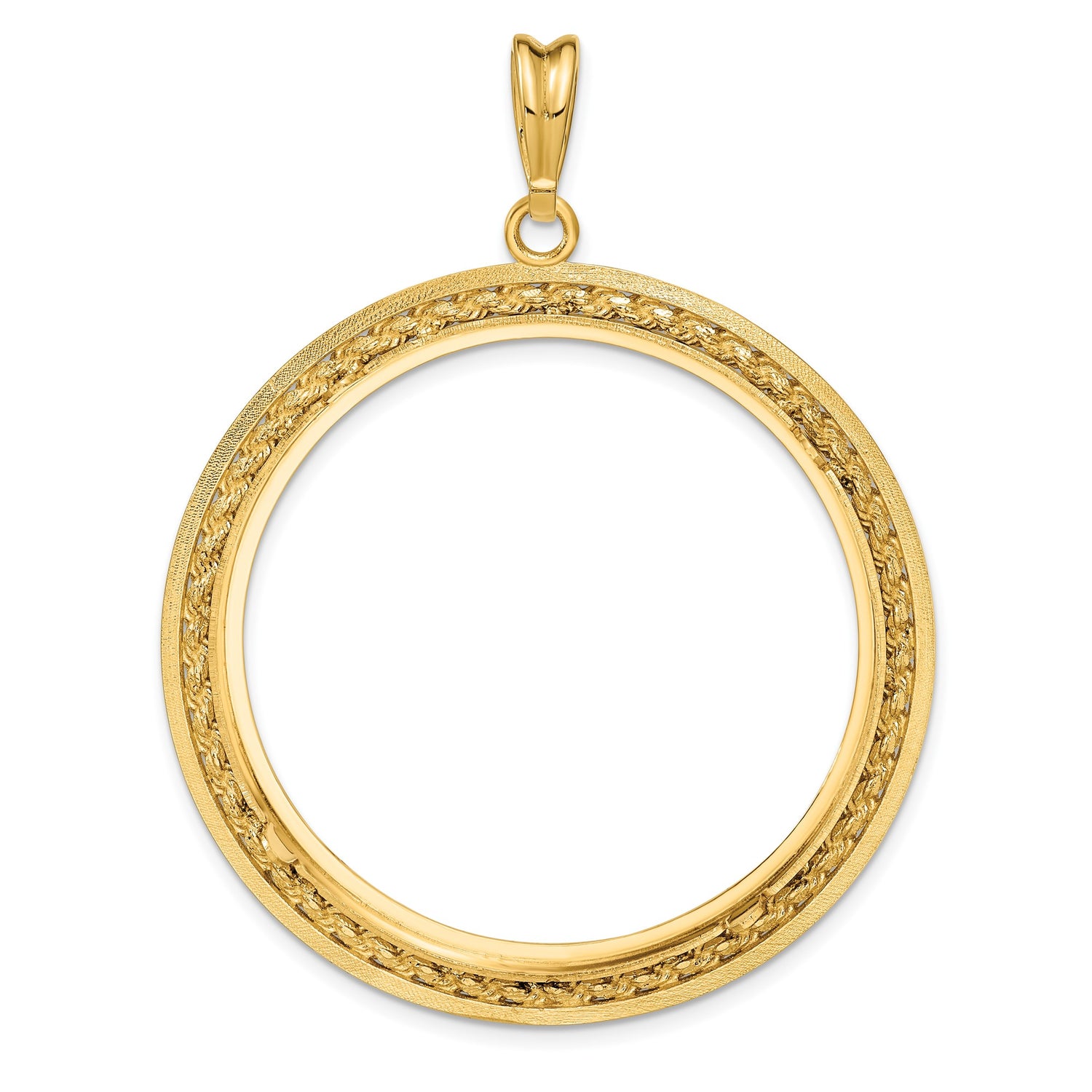 Mexican 50 Pesos Gold Centenario Coin Bezel Pendant Prong Set Rope Frame in 14k Yellow Gold