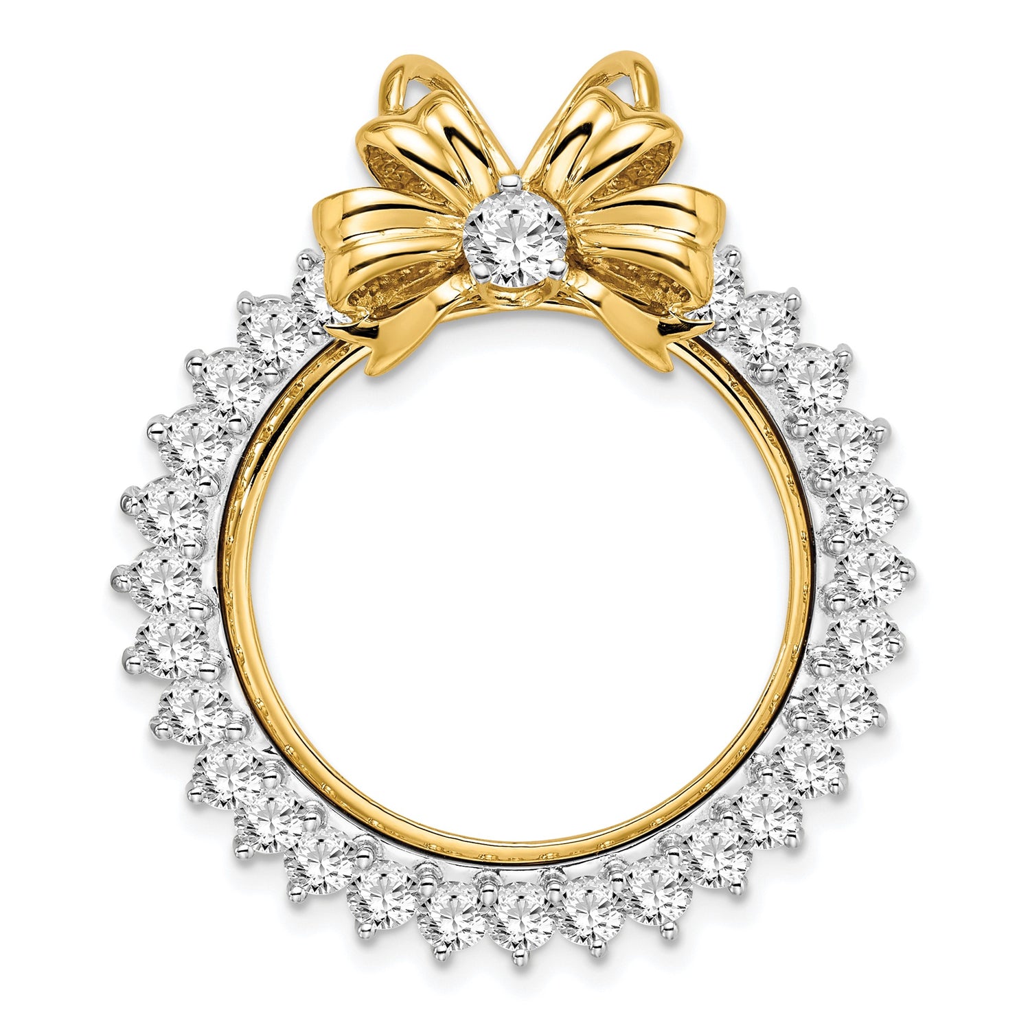 US Gold Indian Head Half Eagle $5 Coin Bezel Pendant Prong Set Diamond Bow Top (22 mm) in 14k Multi-Tone Gold