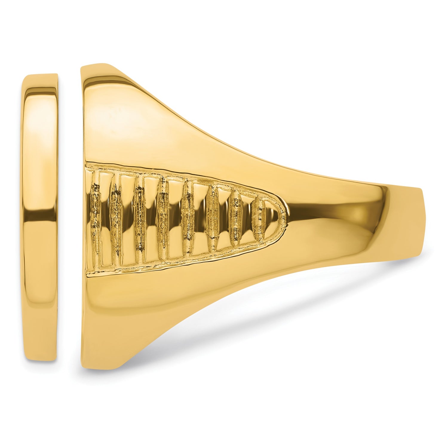 US Gold Liberty Head Half Eagle $5 Coin Bezel Ring Prong Set Polished with Ribbed Center in 14k Yellow Gold