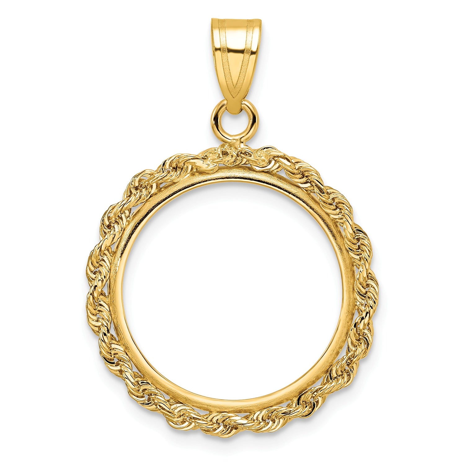 US Gold Liberty Head Quarter Eagle $2.50 Coin Bezel Pendant Prong Set Knotted Rope in 14k Yellow Gold