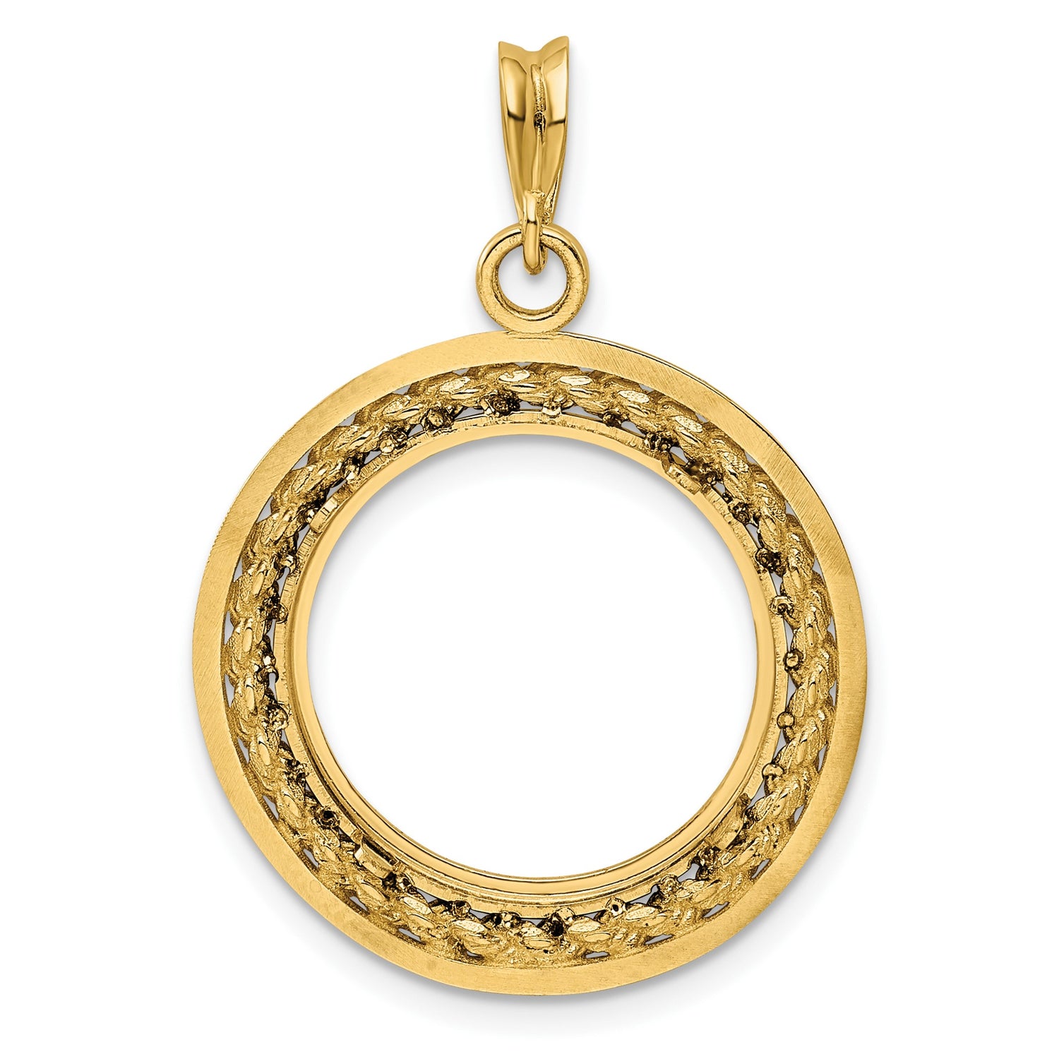 US Gold Liberty Head Quarter Eagle $2.50 Coin Bezel Pendant Prong Set Rope Frame in 14k Yellow Gold