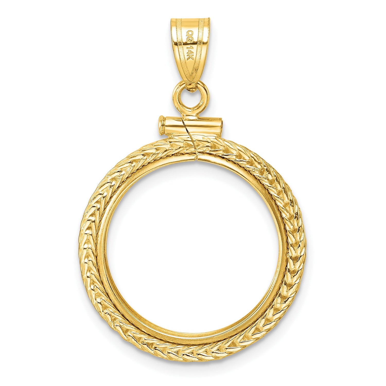 US Gold Liberty Head Quarter Eagle $2.50 Coin Bezel Pendant Screw Top Foxtail Chain in 14k Yellow Gold
