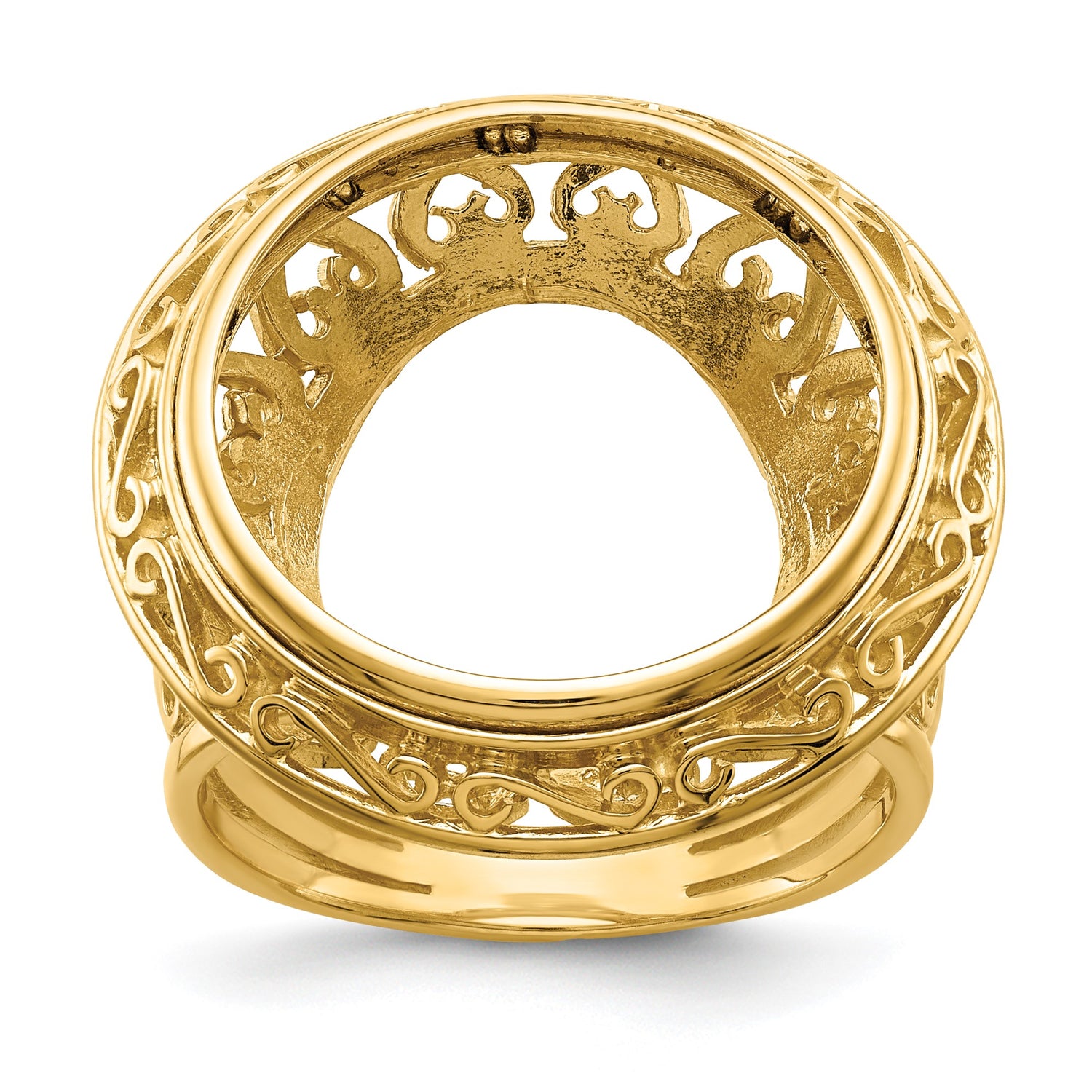 US Gold Liberty Head Quarter Eagle $2.50 Coin Bezel Ring Prong Set Fancy Filigree Knife Edge in 14k Yellow Gold