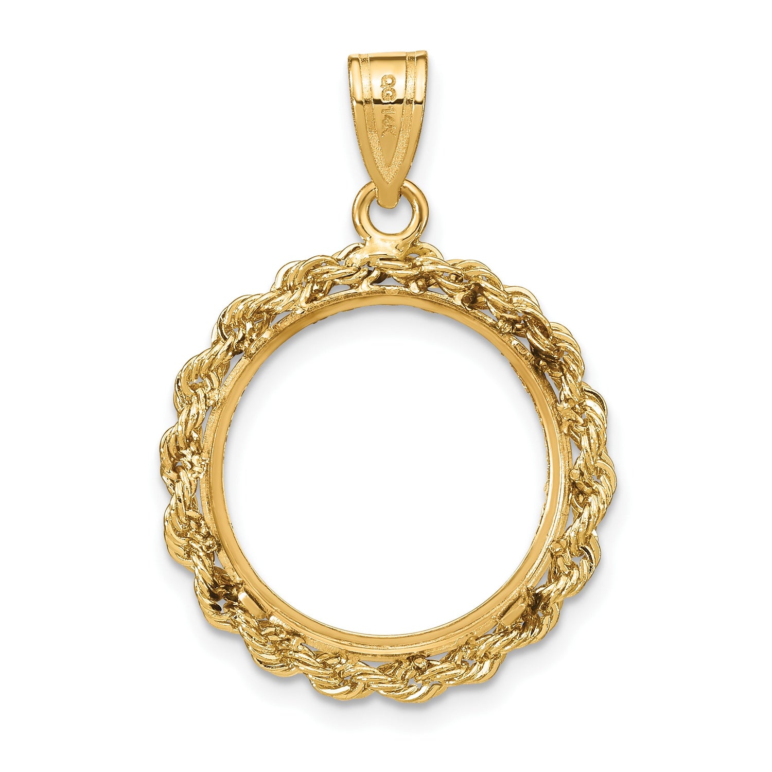 South African 1/10 oz Gold Krugerrand Coin Bezel Pendant Prong Set Petite Diamond-Cut Rope in 14k Yellow Gold