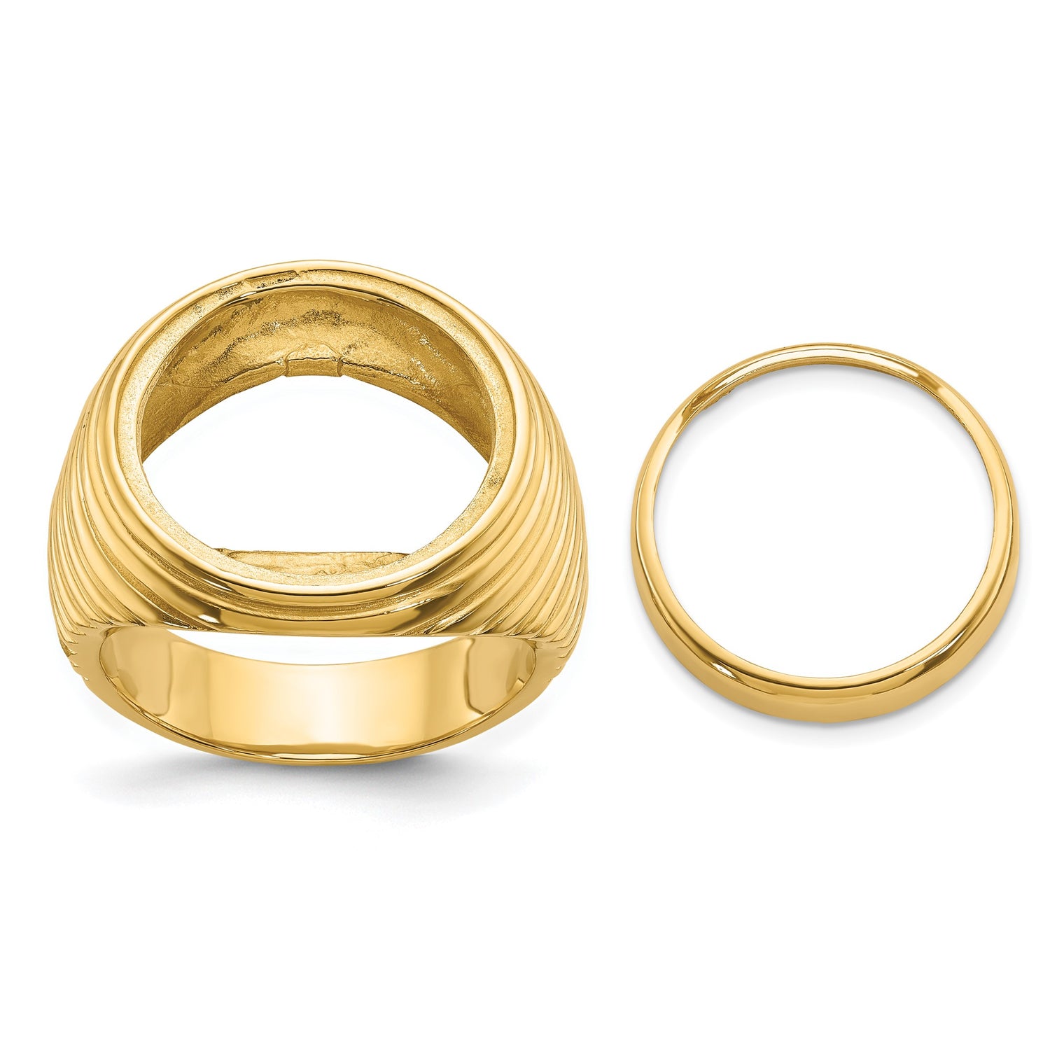 South African 1/10 oz Gold Krugerrand Coin Bezel Ring Prong Set Coil Design Comfort Fit in 14k Yellow Gold