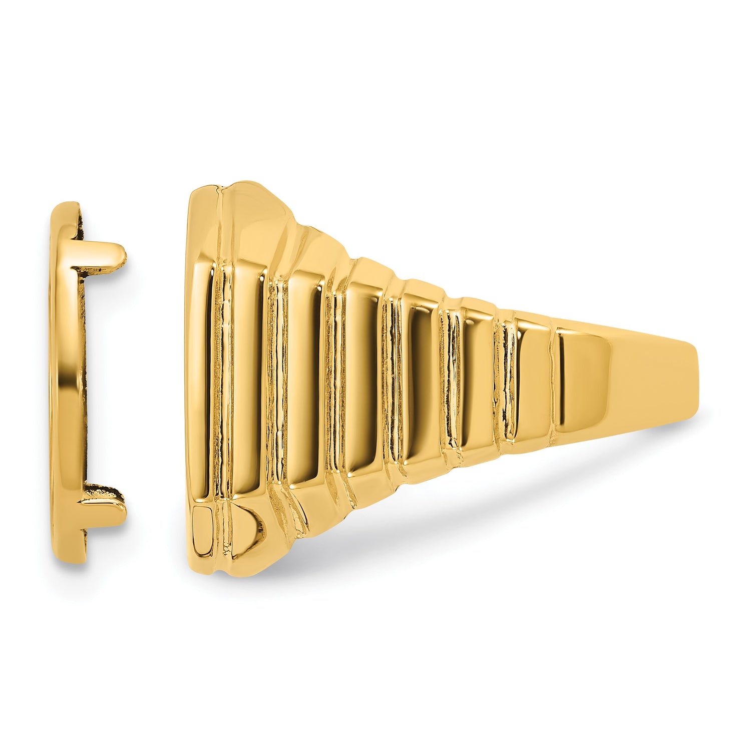 South African 1/10 oz Gold Krugerrand Coin Bezel Ring Prong Set Mens Square Ribbed in 14k Yellow Gold